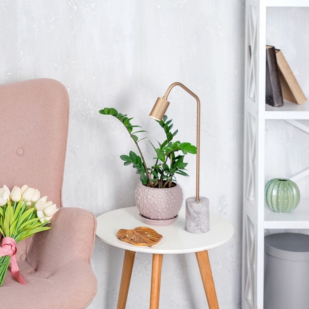 Fabricado em alumínio e acrílico, o abajur oferece excelente durabilidade e acabamento refinado na cor dourada. Pode ser utilizado com lâmpada mini dicroica LED ou fonte de luz COB LED integrada de 3W, emitindo fluxo luminoso entre 270 e 300 lúmens, com temperatura de cor de 3000K (luz amarela quente).