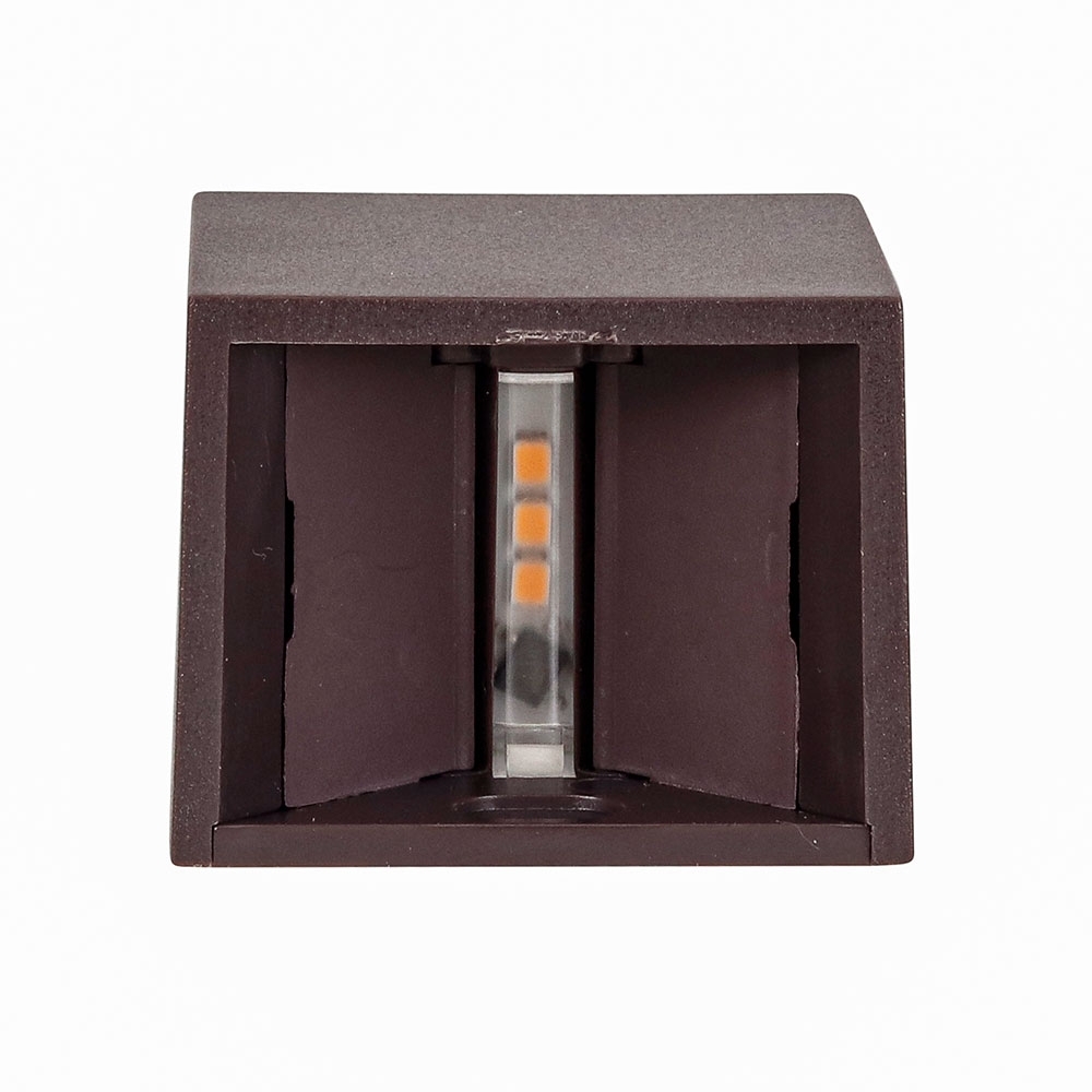 A Arandela Mini LED 2W Bivolt 3000K IP65 na cor marrom com 2 fachos - GAYA é uma luminária que combina beleza, eficiência e resistência para iluminar seus espaços com estilo e funcionalidade.