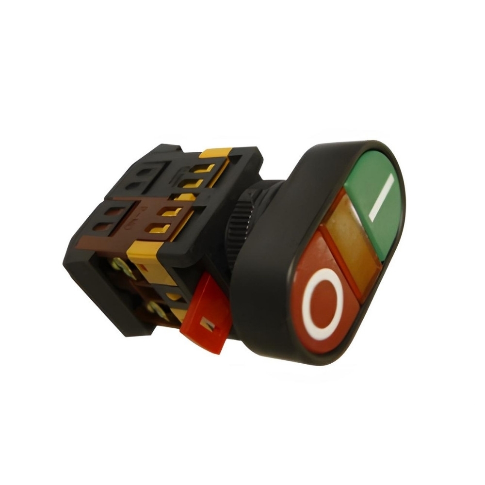 BOTAO DUPLO COM ILUMINACAO ON/OFF 1NA 1NF 24VCC - JNG é utilizado em sistemas de comando onde é necessário realizar operações de liga e desliga por pulso, garantindo intertravamento seguro do circuito elétrico. Possui iluminação em LED para sinalização de funcionamento, facilitando a visualização do estado do equipamento, além de cabeçote oval compatível com furação padrão de 22 mm, o que torna sua instalação prática em painéis de comando e automação industrial.