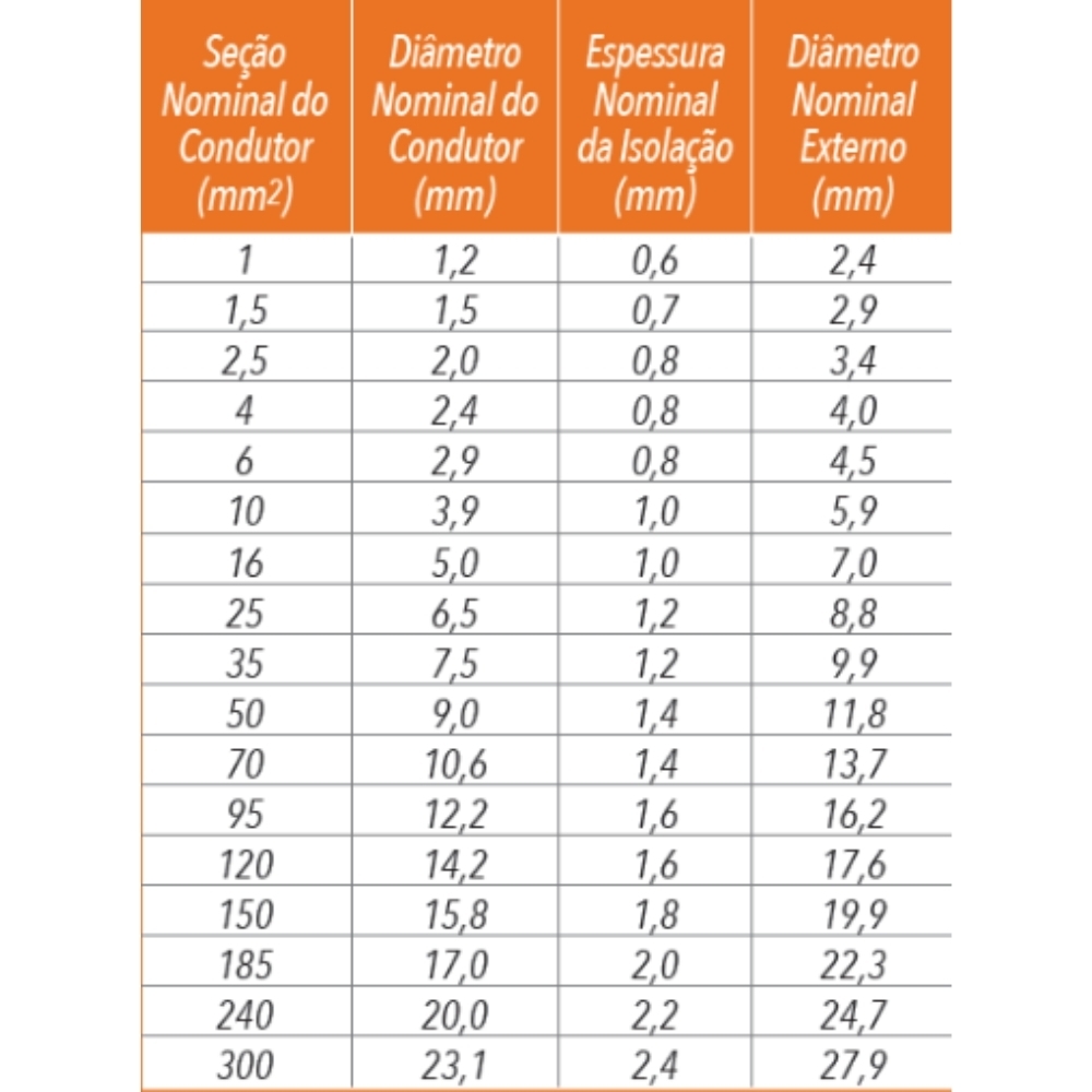 Têmpera mole: Classe 4 de encordoamento até a seção 6mm2 e classe 5 de encordoamento a partir da seção 10mm2 (extra flexível)