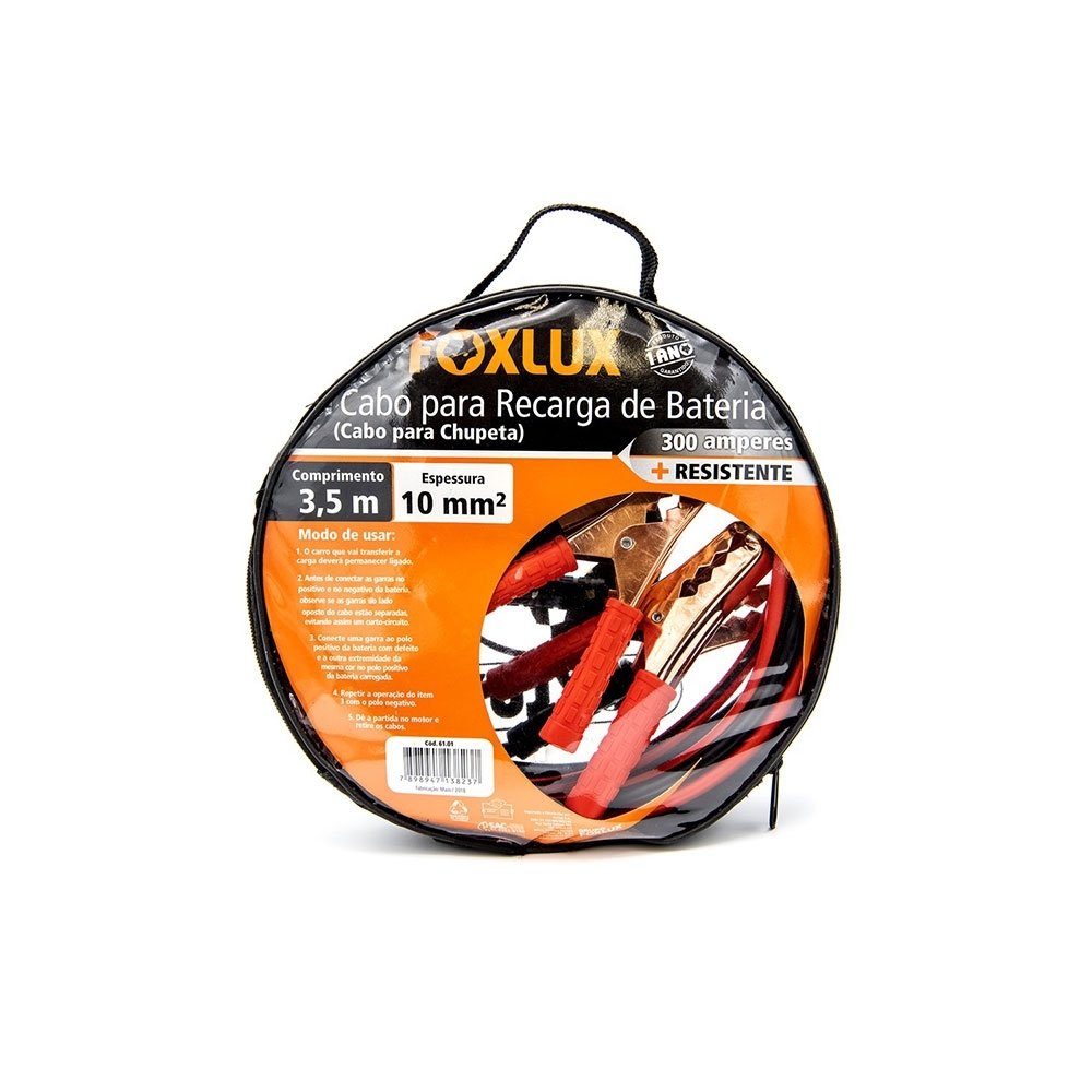 O Cabo para Recarga de Bateria "Chupeta" 3,5 Metros da Foxlux é o aliado perfeito para situações inesperadas na estrada. Com um comprimento de 3,5 metros, ele oferece flexibilidade para alcançar baterias em diversas posições, facilitando o processo de recarga. Sua construção robusta e materiais de primeira linha asseguram uma transferência de energia eficiente e segura. Seja para uso pessoal ou profissional, este cabo é indispensável para quem busca soluções práticas e confiáveis em momentos de emergência. Escolha Foxlux e esteja sempre preparado para imprevistos com seu veículo.