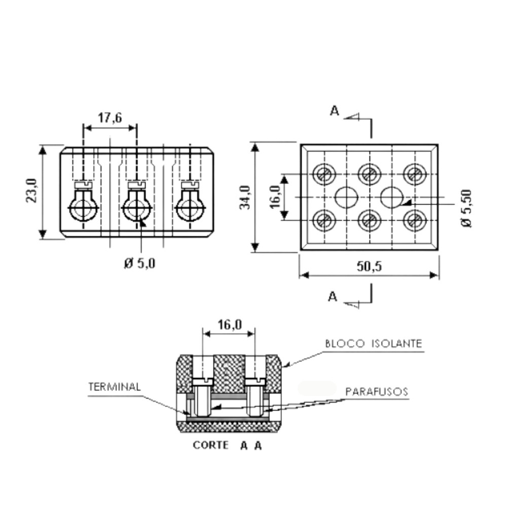 Com capacidade para fios de até 16mm², conta com 3 bornes de conexão e furo de fixação que facilita a instalação segura e estável. A robustez do material cerâmico assegura maior resistência mecânica, durabilidade e confiabilidade, especialmente em aplicações que exigem alta isolação térmica.