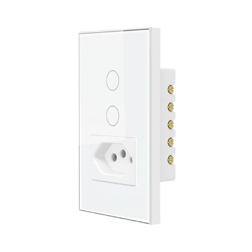 O Conjunto 4x2 com 2 interruptores e 1 tomada touch branco Wi-Fi Steck Ambiente Conectado oferece praticidade e modernidade para o seu dia a dia, permitindo controlar a iluminação e dispositivos diretamente pelo smartphone ou por comandos de voz. Com acabamento sofisticado em vidro temperado e moldura em ABS, o design clean combina elegância e tecnologia em um único produto.