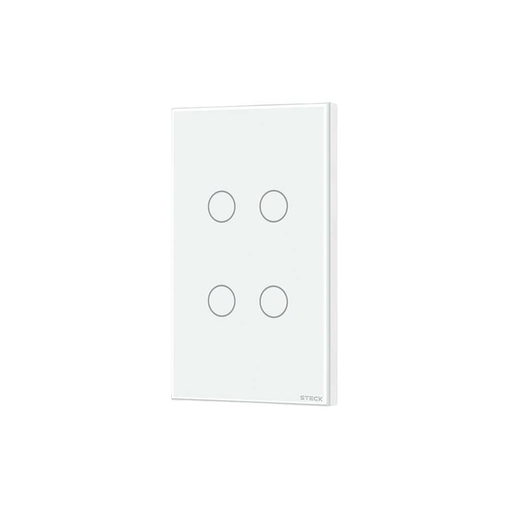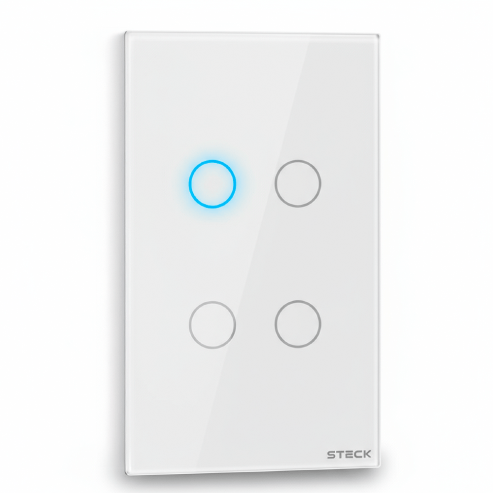 Com acabamento elegante em vidro temperado e moldura em ABS, o design sofisticado se une à funcionalidade dos botões touchscreen de alta sensibilidade, equipados com luzes de LED sinalizadoras que mostram o status da iluminação. O modelo é compatível com lâmpadas convencionais, funciona via Wi-Fi sem necessidade de hubs e integra-se perfeitamente a todos os dispositivos da linha Steck Ambiente Conectado.
