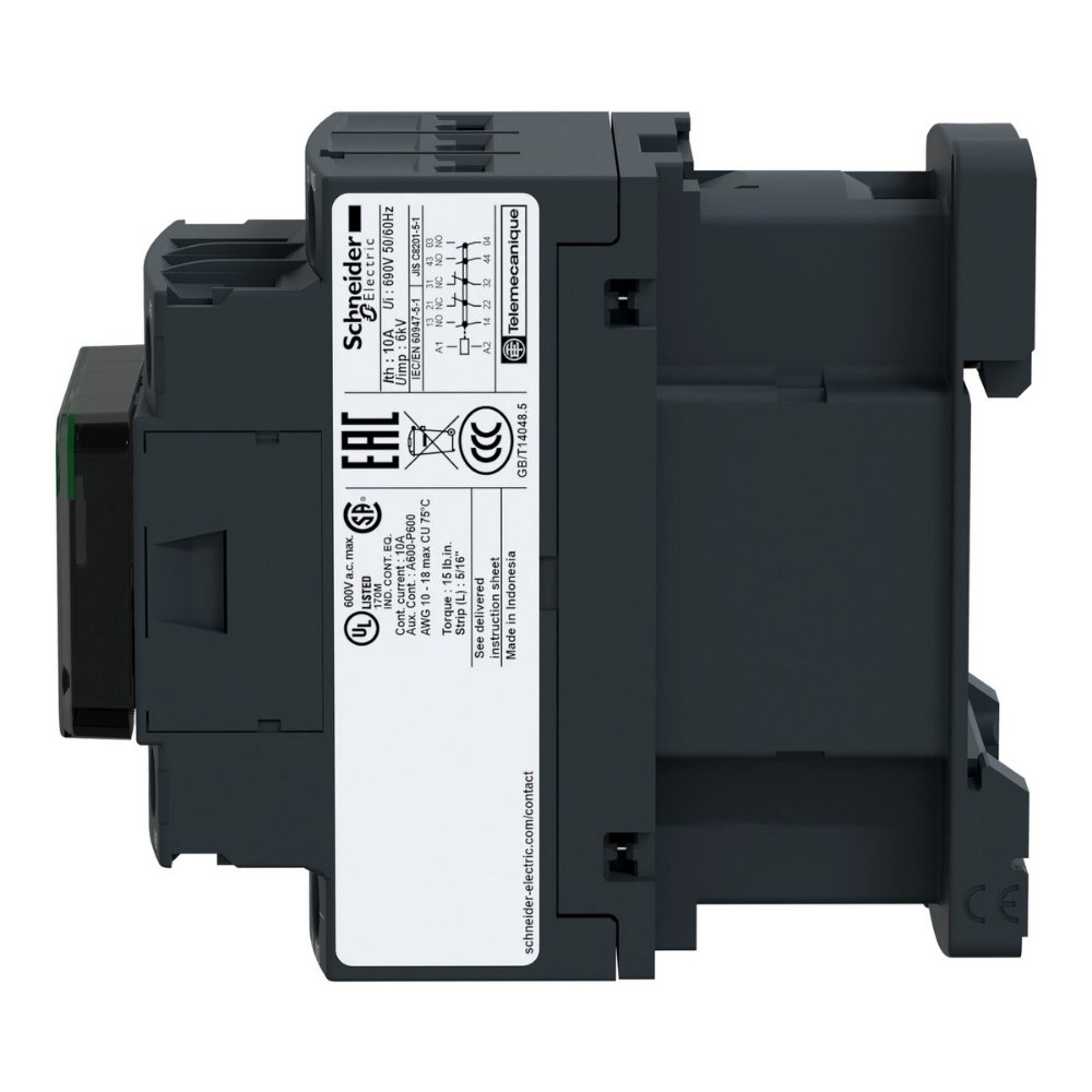 O contator auxiliar Schneider garante alta durabilidade mesmo em aplicações severas, suportando até 180 ciclos de operação por minuto e faixa de temperatura ambiente de -40°C a +60°C, o que o torna ideal para ambientes industriais exigentes. Conta com conexão por terminais de grampo de parafuso, assegurando firmeza e segurança elétrica nas ligações. Possui certificações internacionais como IEC, UL, CSA, CCC, EAC e Marine, além do selo Green Premium, que assegura conformidade com as normas ambientais RoHS e REACh. É a escolha perfeita para quem busca desempenho confiável, robustez, padronização internacional e eficiência em sistemas de automação e controle industrial, contando ainda com 18 meses de garantia.