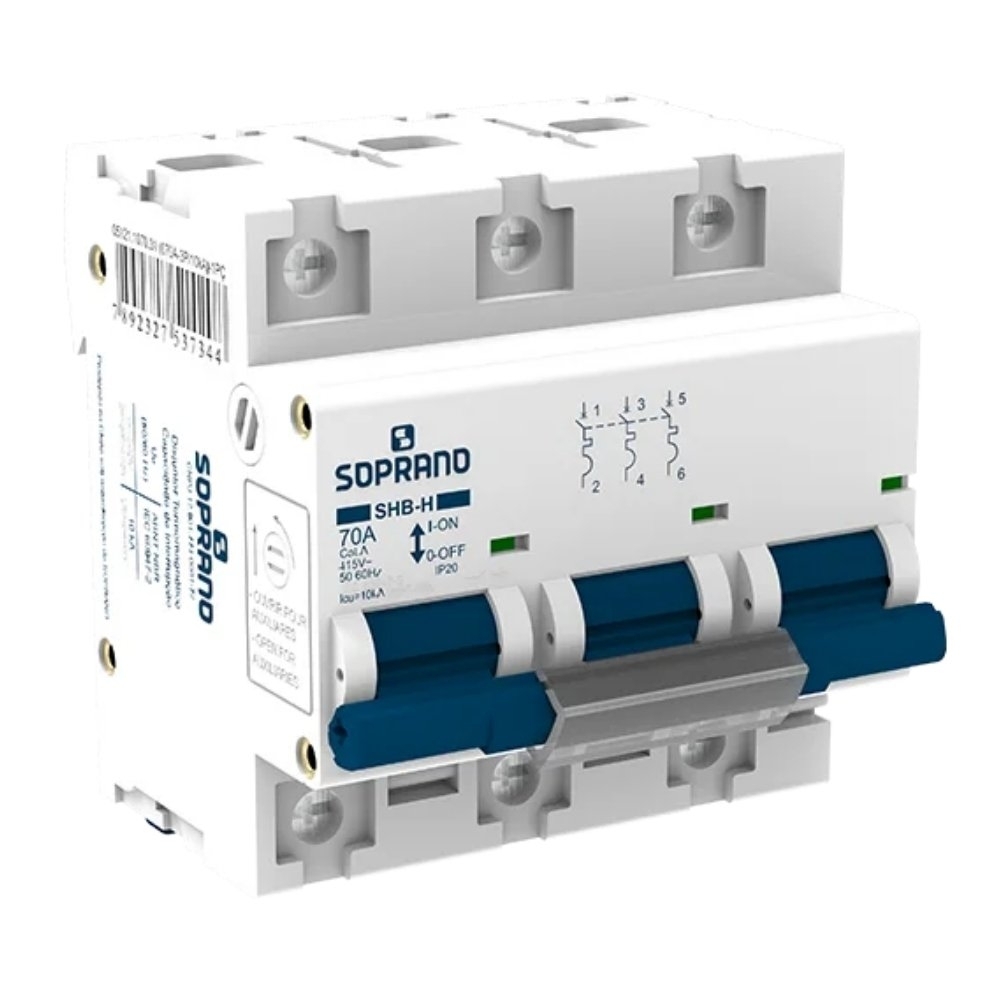 O disjuntor DIN 3 polos 125A curva C SHB H Soprano é indicado para proteção de circuitos elétricos trifásicos contra sobrecarga e curto-circuito, sendo ideal para aplicações industriais, comerciais e quadros de distribuição de maior potência. Desenvolvido para garantir alta capacidade de interrupção e segurança, oferece desempenho confiável em instalações de média e alta corrente.
