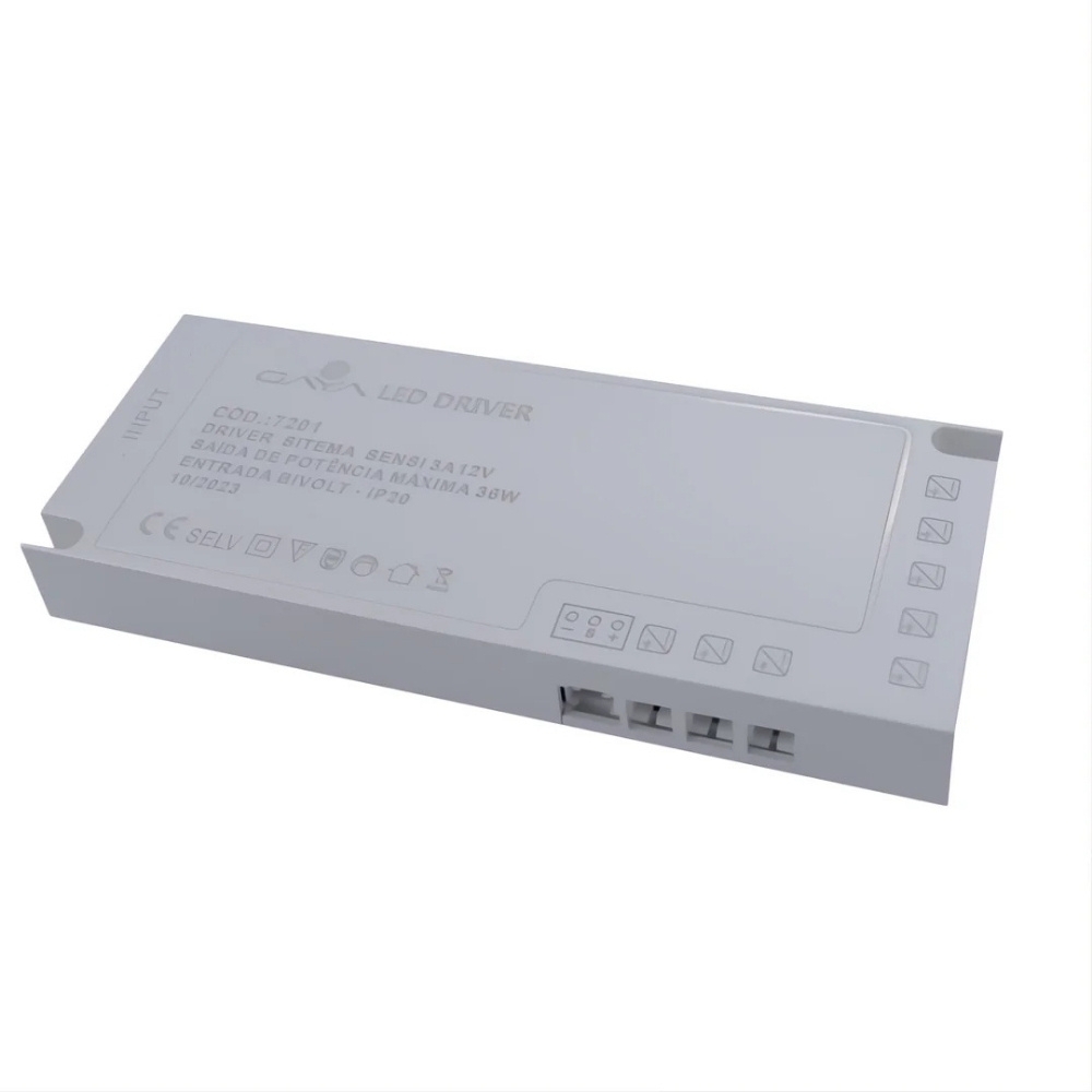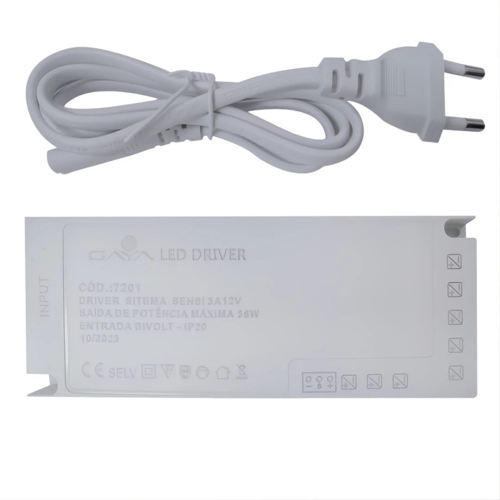 Driver Sensi Bivolt 12V 100W Branco – Gaya é ideal para projetos de marcenaria e iluminação moderna com controle sensorial, permitindo criar diferentes ambientes de forma prática e intuitiva. Integrante da linha Sensi, o driver oferece versatilidade ao possibilitar ligação independente, controlando apenas uma fita, ou ligação central, controlando múltiplas fitas simultaneamente, garantindo flexibilidade conforme a necessidade do projeto.