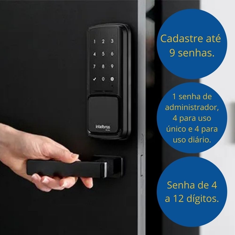 A fechadura digital FV101 da Intelbras é uma solução prática, segura e moderna para controle de acesso em residências, apartamentos e salas comerciais. Com sistema de abertura por senha, permite cadastrar até 9 combinações numéricas: 1 senha de administrador, 4 para usuários fixos e 4 destinadas a visitantes, oferecendo mais controle e comodidade na gestão de quem entra e sai do ambiente.