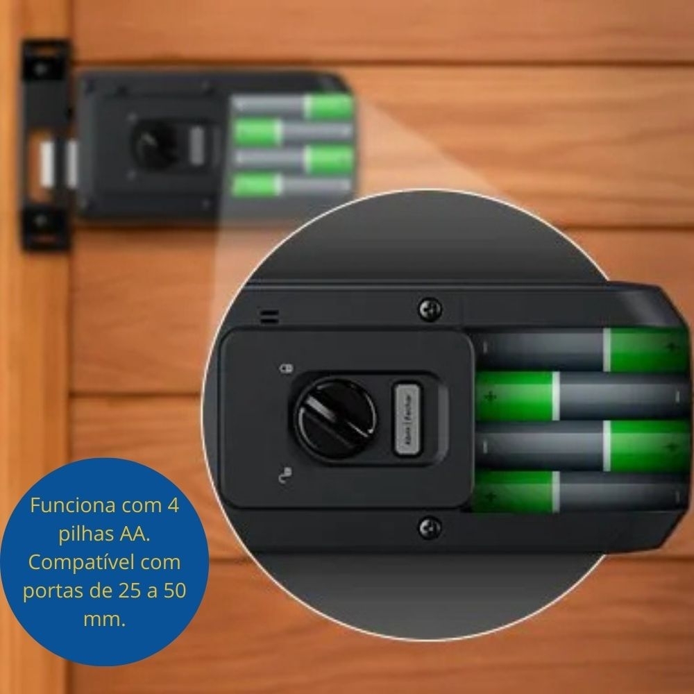 Alimentação com 4 pilhas AA, com autonomia média de até 1 ano (com uso estimado de 10 acessos por dia).
