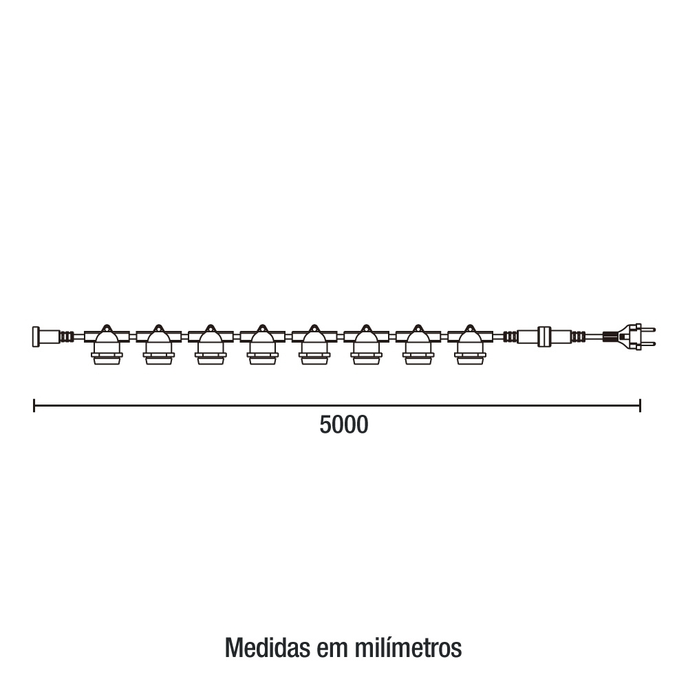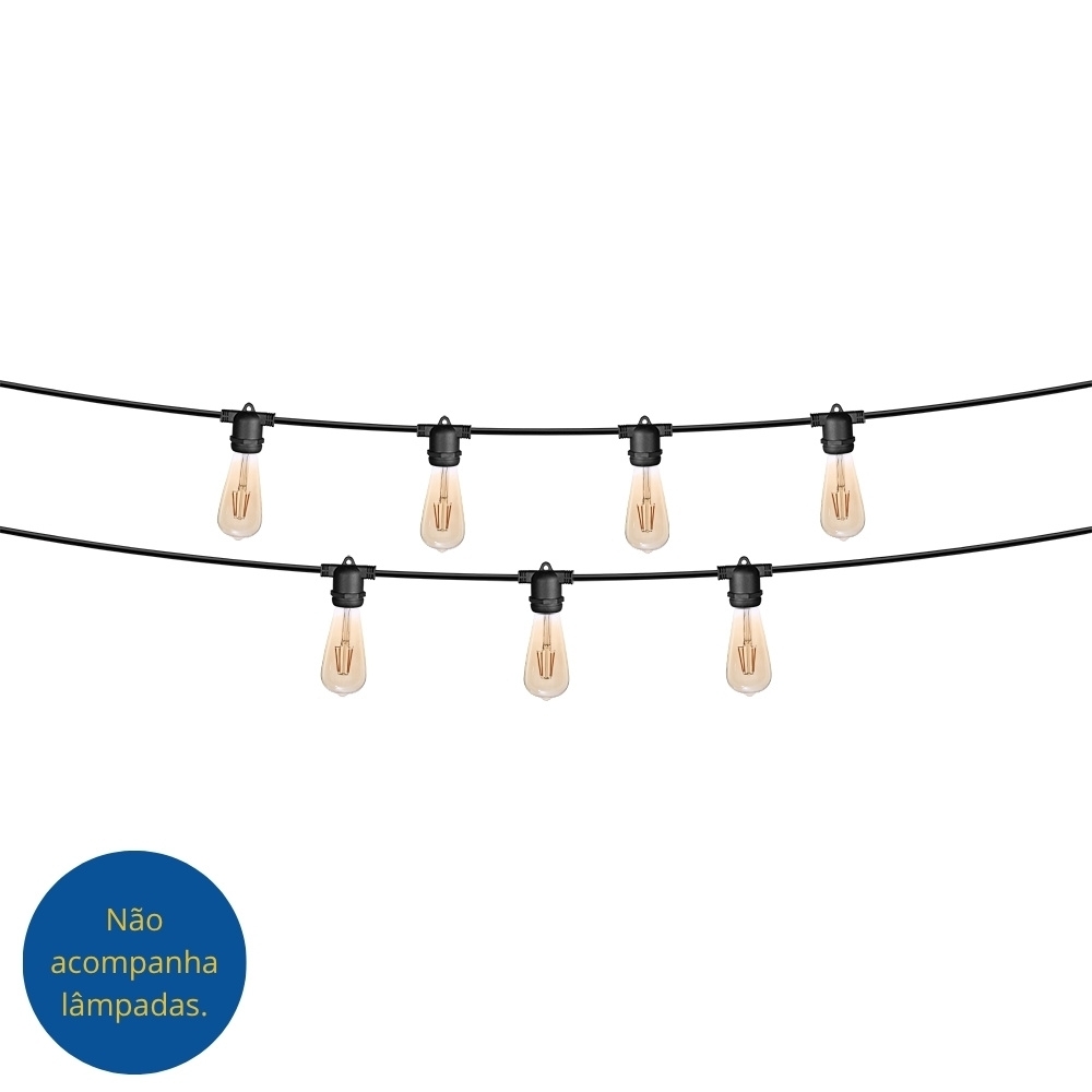 FESTÃO VARAL COM 8 SOQUETES E27 PRETO IP65 5 METROS – BLUMENAU