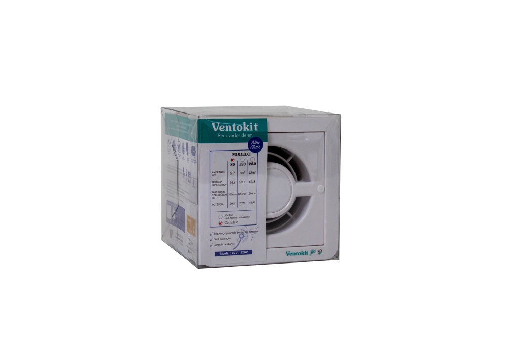 Silencioso, mas poderoso, o Kit Exaustor New Classic Bivolt C80A da Ventokit promove a renovação do ar de forma contínua e eficiente, melhorando significativamente a qualidade do ambiente interno. Com este exaustor, você garante um ambiente mais saudável e agradável, livre de problemas comuns causados pela falta de ventilação adequada.