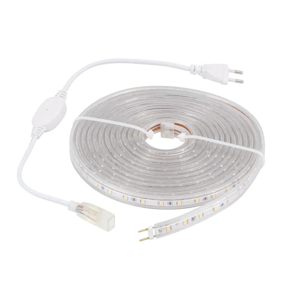 A classificação IP65 assegura que a fita LED é resistente a poeira e jatos d'água, tornando-a adequada para uso tanto em ambientes internos quanto externos, oferecendo versatilidade e segurança em diversas condições de instalação.