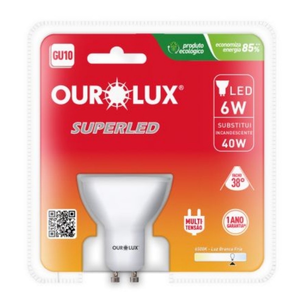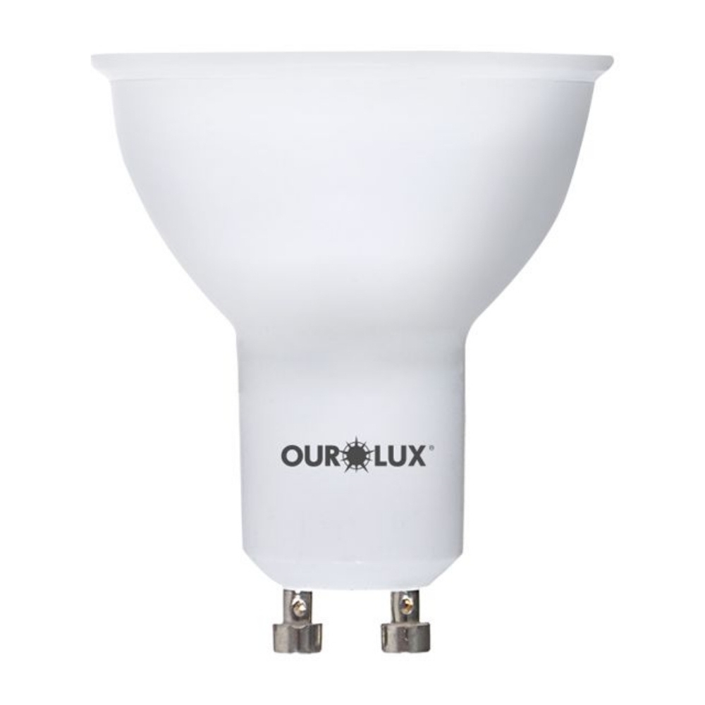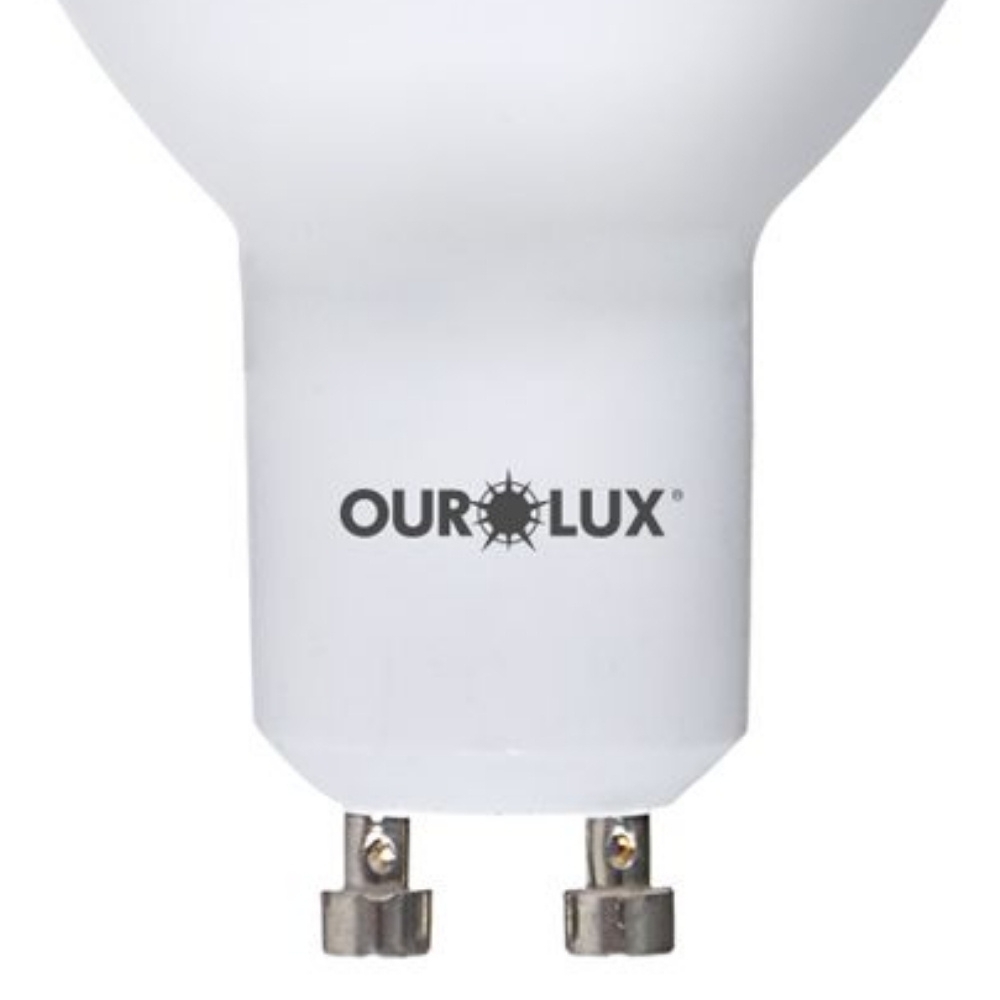 A base GU10 dispensa o uso de transformadores, facilitando a instalação em spots embutidos no forro ou trilhos. Além disso, a tecnologia LED da Ourolux garante vida útil de até 25.000 horas e eficiência luminosa de 100 lm/W, reduzindo significativamente os custos de manutenção e troca frequente.