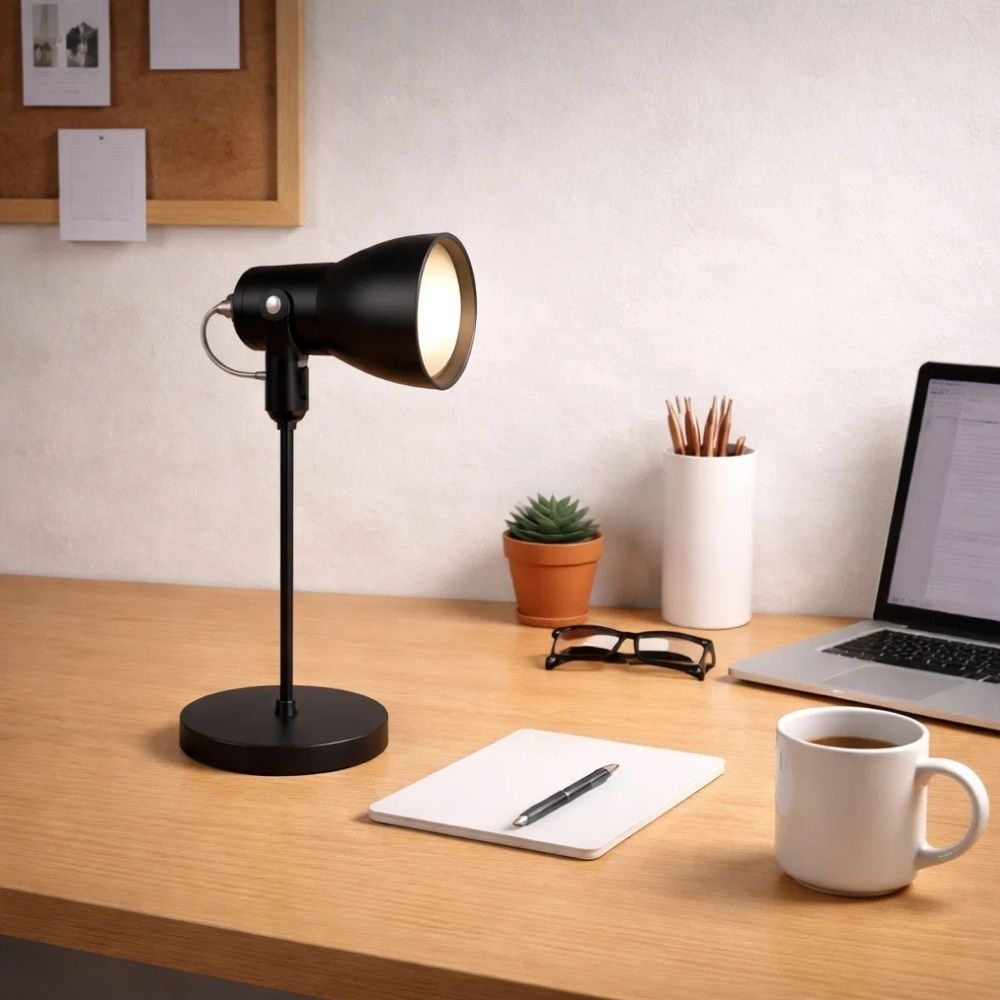 Além de excelente iluminação, essa peça ainda decora seu ambiente.A Luminária de Mesa para 1 lâmpada de base E27 da Kin light é fabricada em material de excelente qualidade, tem design moderno, é compacta e se encaixa em qualquer espaço que você escolha. Garanta uma mesa de estudos iluminada e moderna com a Luminária de Mesa da Kin Light!