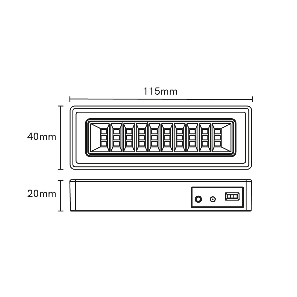 Dimensões: 115 × 20 × 40 mm (C × A × L)