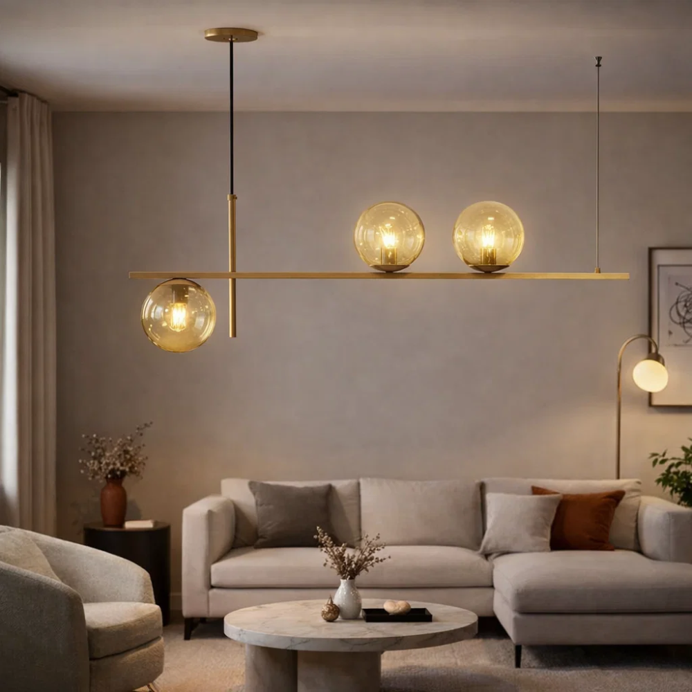 O Lustre Jabuticaba Preto com Vidro Âmbar da TY Iluminação é uma peça elegante e moderna que valoriza qualquer ambiente. Seu design com três esferas em vidro âmbar adiciona um toque de sofisticação e charme, ideal para salas de jantar, halls e ambientes residenciais contemporâneos.