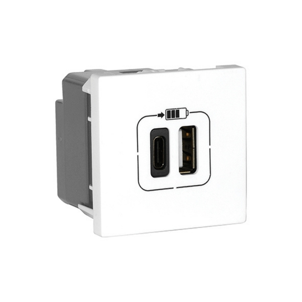 • MODULO TOMADA COM 2 USB TIPO A + C 3A BRANCO PIAL PLUS+ - LEGRAND