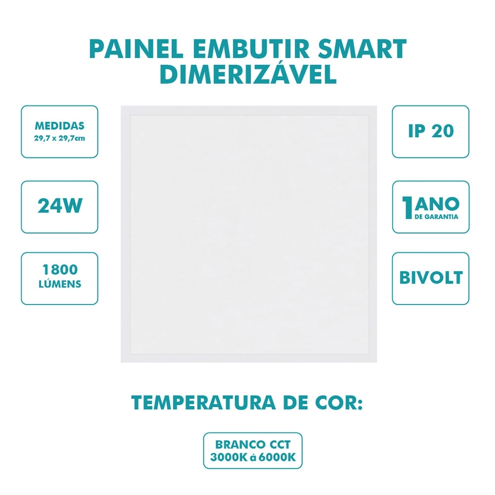 Este painel LED é bivolt, tornando-o versátil e adequado para diferentes ambientes. Com uma potência de 24W, ele oferece uma iluminação brilhante com 1800 lumens de fluxo luminoso. Você pode escolher entre duas opções de temperatura de cor: 3000K (branco quente) ou 6000K (branco frio), adaptando a iluminação ao ambiente e às suas preferências.