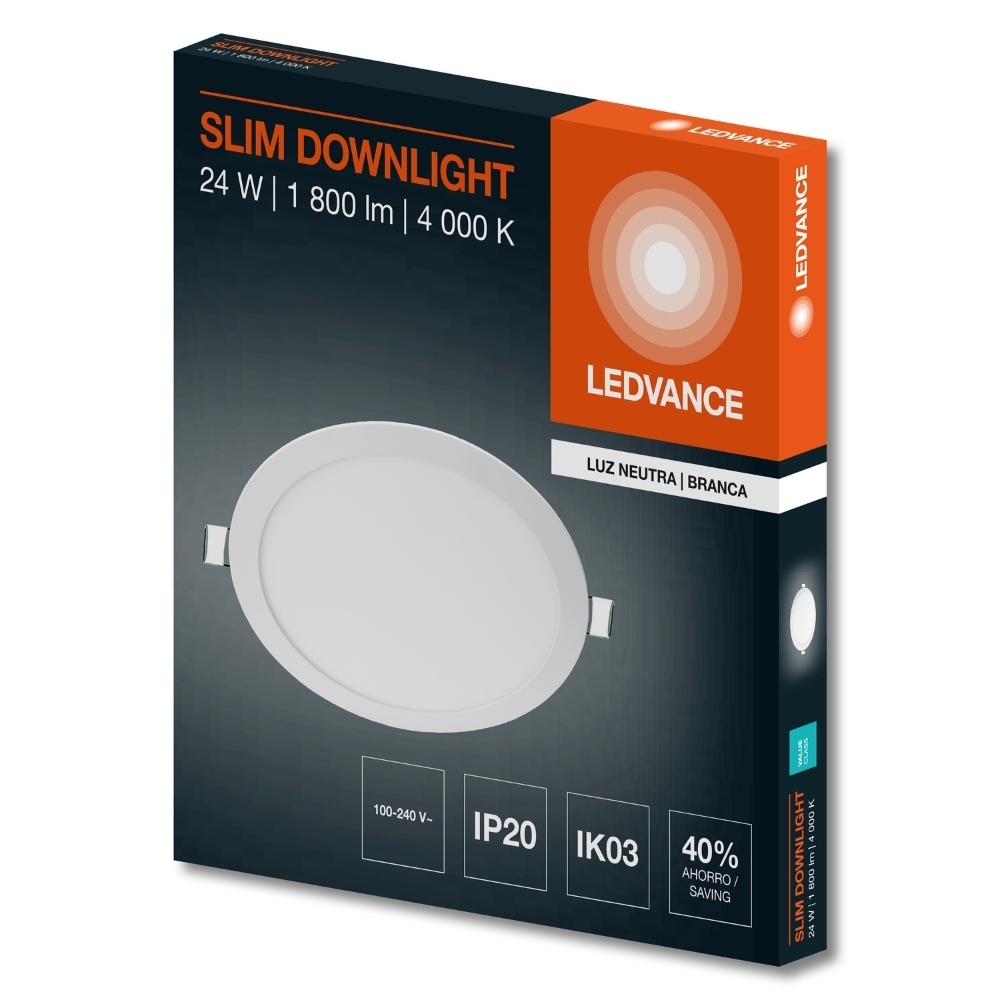 PAINEL LED EMBUTIR 24W BIVOLT LUZ NEUTRA 4000K 1800LM REDONDO 30CM - LEDVANCEPAINEL LED EMBUTIR 24W BIVOLT LUZ NEUTRA 4000K 1800LM REDONDO 30CM - LEDVANCE