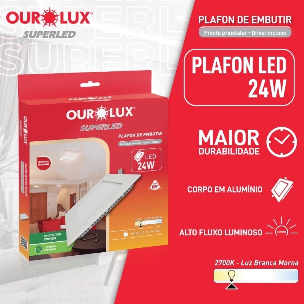 Radiante com uma emissão potente de 1440LM, a luz amarela desse painel estabelece um ambiente acolhedor, transformando e valorizando cada canto do espaço. Mais do que mero aparato estético, o Painel Led da Ourolux é um marco de eficiência. Ao compará-lo com as luminárias de embutir tradicionais que utilizam lâmpadas fluorescentes compactas, percebe-se não só uma substituição, mas uma superioridade em termos de performance, consumo e longevidade.