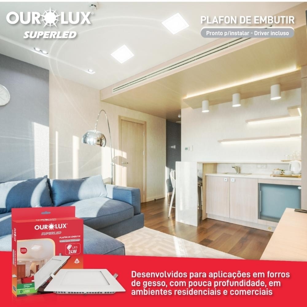 O Painel Led Quadrado Embutir 24W da Ourolux representa uma evolução notável na iluminação contemporânea, especialmente projetado para se encaixar perfeitamente em forros de gesso com pouca profundidade. Medindo 30cm e com capacidade bivolt, ele é a escolha ideal para iluminar ambientes variados, desde residenciais até comerciais, proporcionando uma luminosidade marcante e homogênea.
