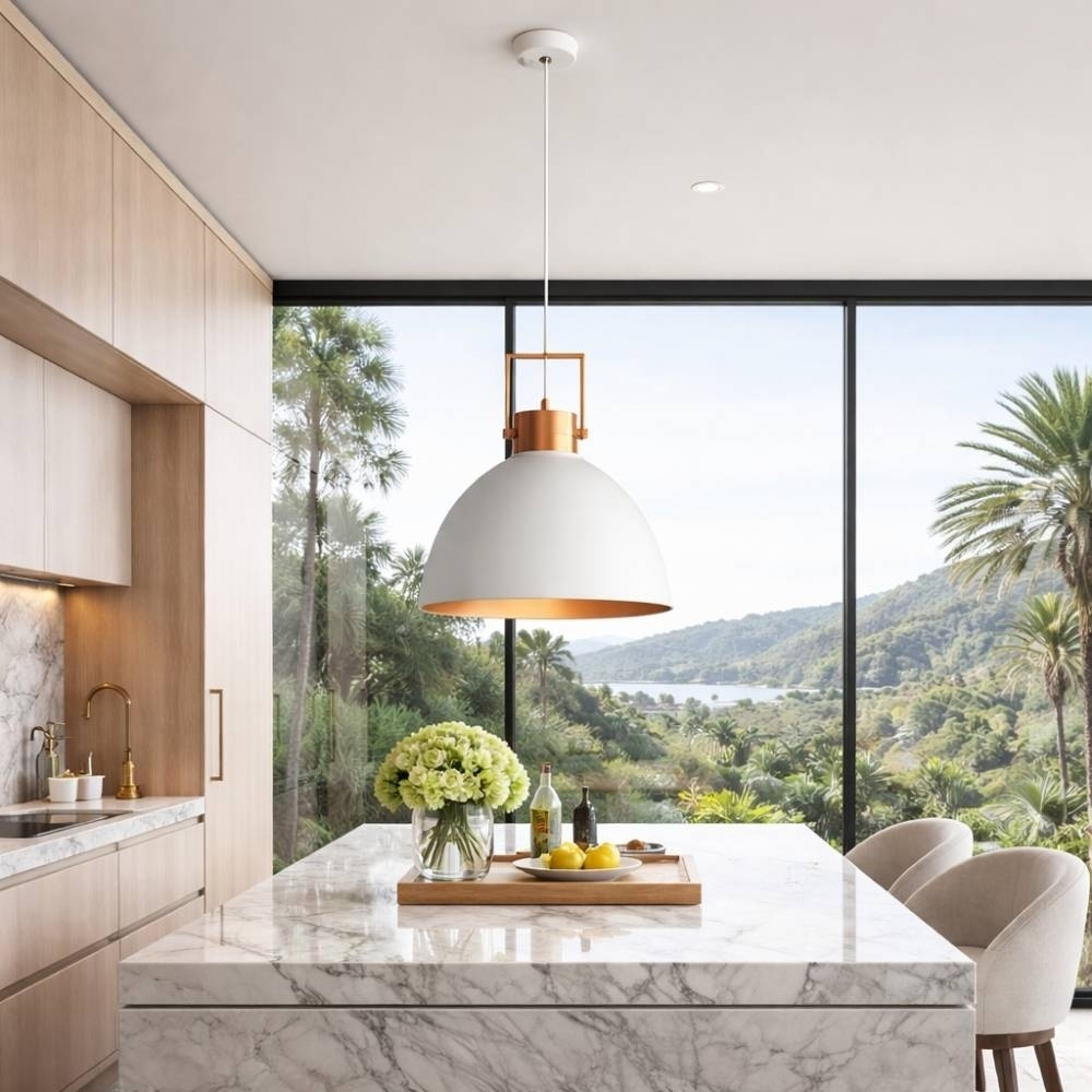 Produto: Pendente Aveiro Metal para 1 Lâmpada E27 Branco e Cobre - Kin Light