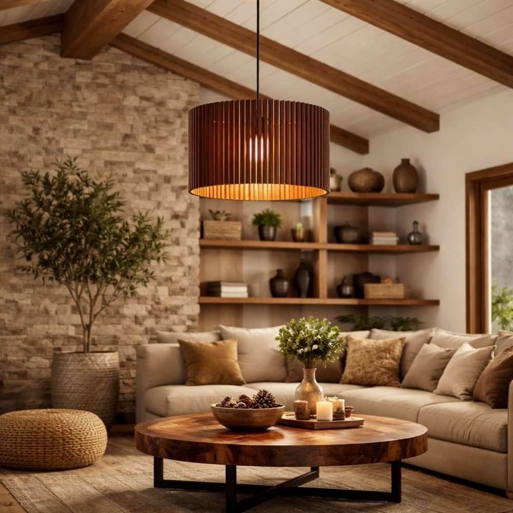 O pendente Bilbao é uma luminária decorativa indicada para salas, quartos, cozinhas e áreas gourmet, trazendo acabamento em madeira natural que proporciona um visual aconchegante e elegante ao ambiente. Seu design moderno combina com diferentes estilos de decoração, valorizando o espaço e criando pontos de iluminação sofisticados.