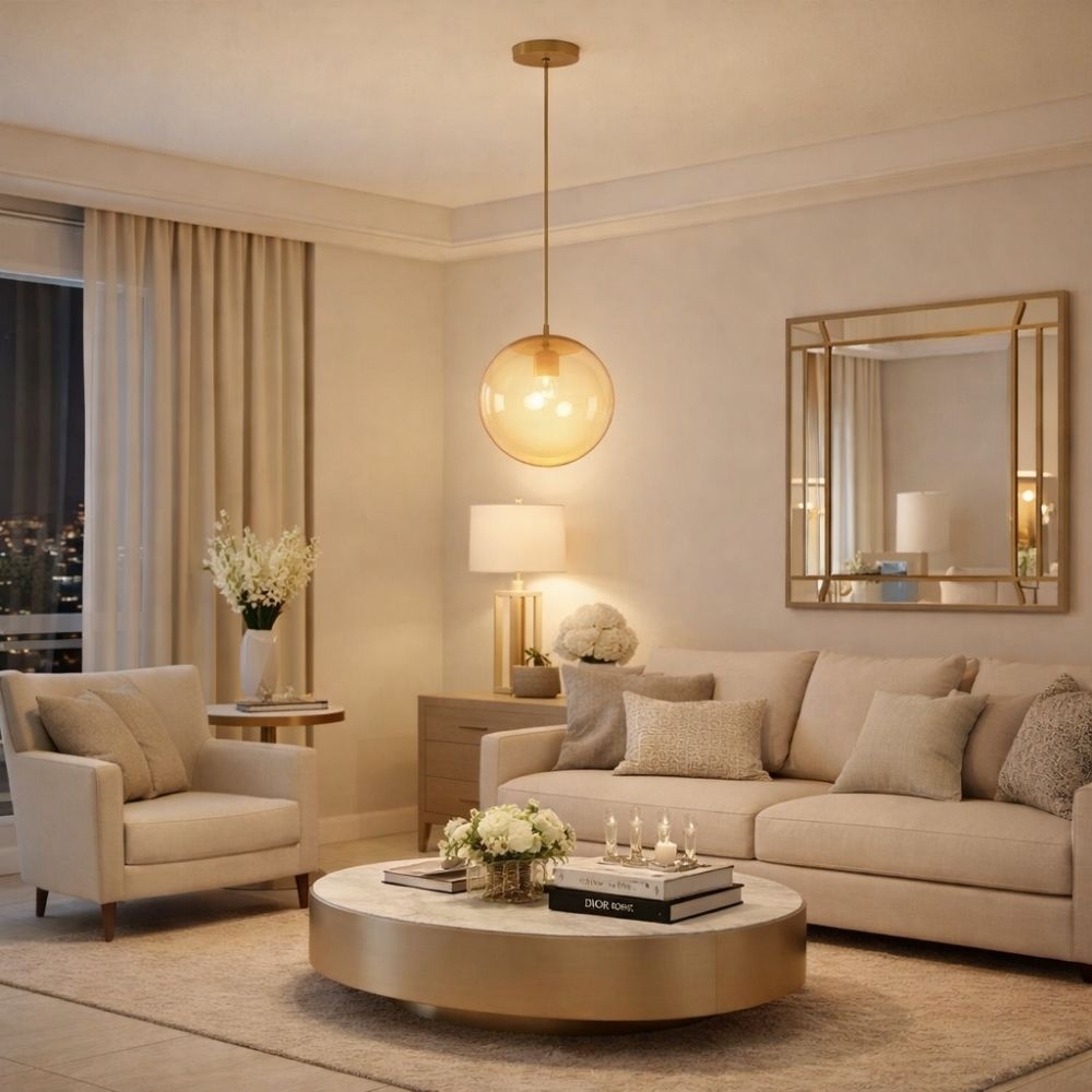 O pendente Catar é uma luminária decorativa ideal para salas, cozinhas, bancadas e áreas gourmet, unindo design sofisticado com acabamento dourado champanhe e globo em vidro âmbar que proporciona iluminação aconchegante e elegante. Seu visual moderno valoriza a decoração e cria pontos de destaque no ambiente.