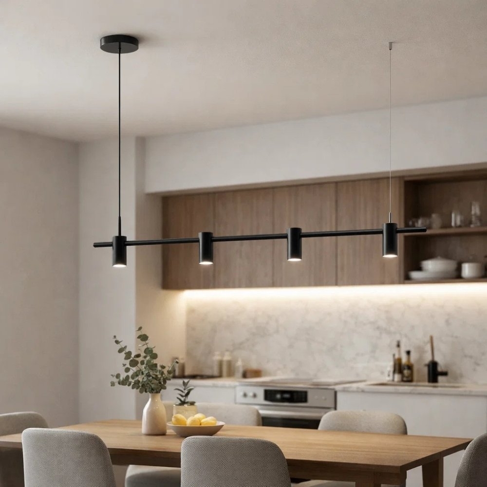 O Pendente Flash Spot Line oferece um visual moderno e funcional para ambientes que exigem estilo e boa iluminação. Com estrutura robusta em alumínio preto, é ideal para salas de jantar, áreas gourmet, balcões e espaços comerciais, proporcionando uma iluminação direcionada e elegante.