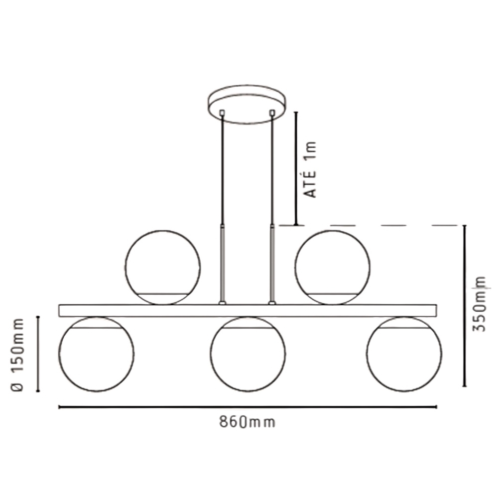 Compatível com 5 lâmpadas soquete E27, permite fácil substituição e variação de intensidade e tonalidade de luz conforme o estilo desejado, podendo ser utilizado sobre mesas, balcões e ilhas.