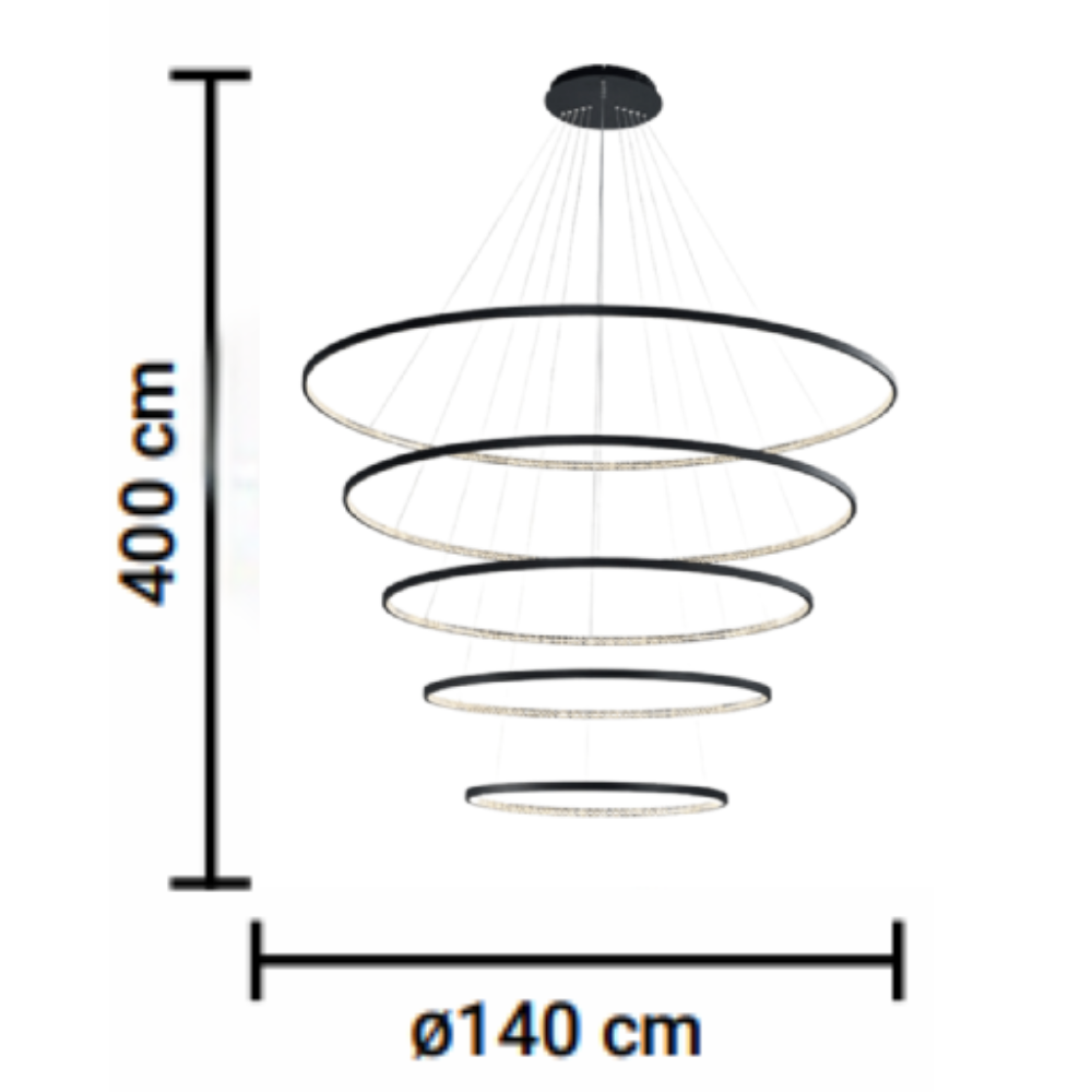 O Pendente LED Milano 157W Luz Amarela 3000K 15700lm Preto 5 Anéis - Hevvy é uma escolha excelente para quem busca uma iluminação potente e um design moderno. Com uma potência de 157W e um fluxo luminoso impressionante de 15700 lumens, este pendente é capaz de iluminar amplamente qualquer ambiente, proporcionando uma luz amarela de 3000K que cria uma atmosfera acolhedora e convidativa.