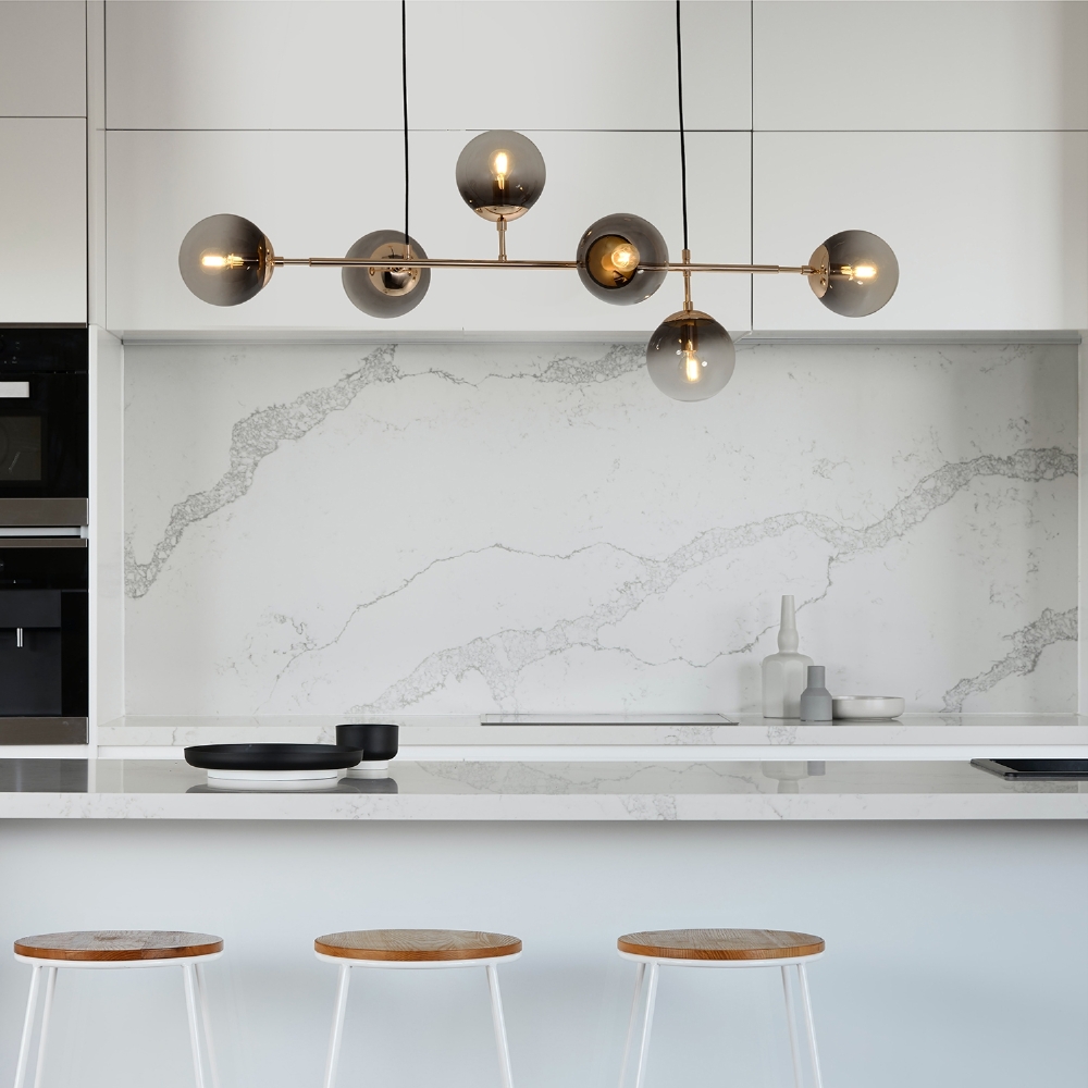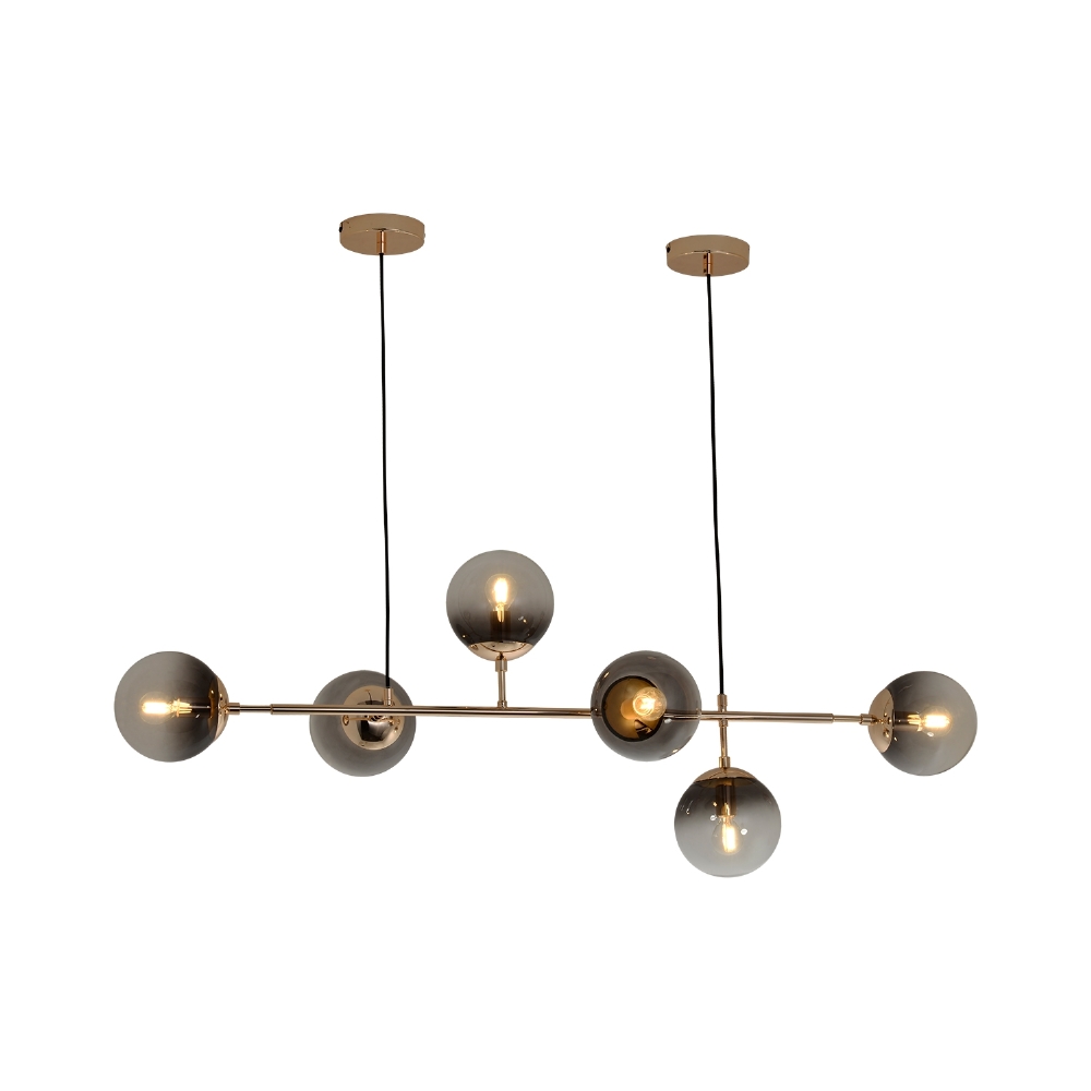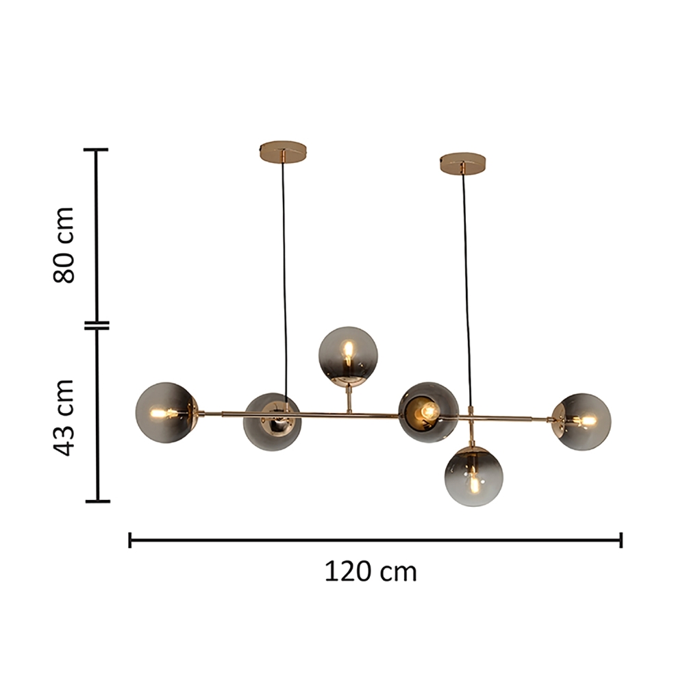 Com soquete E14 e capacidade para seis lâmpadas, o pendente oferece iluminação intensa e distribuída de forma harmoniosa, valorizando cada detalhe do ambiente.