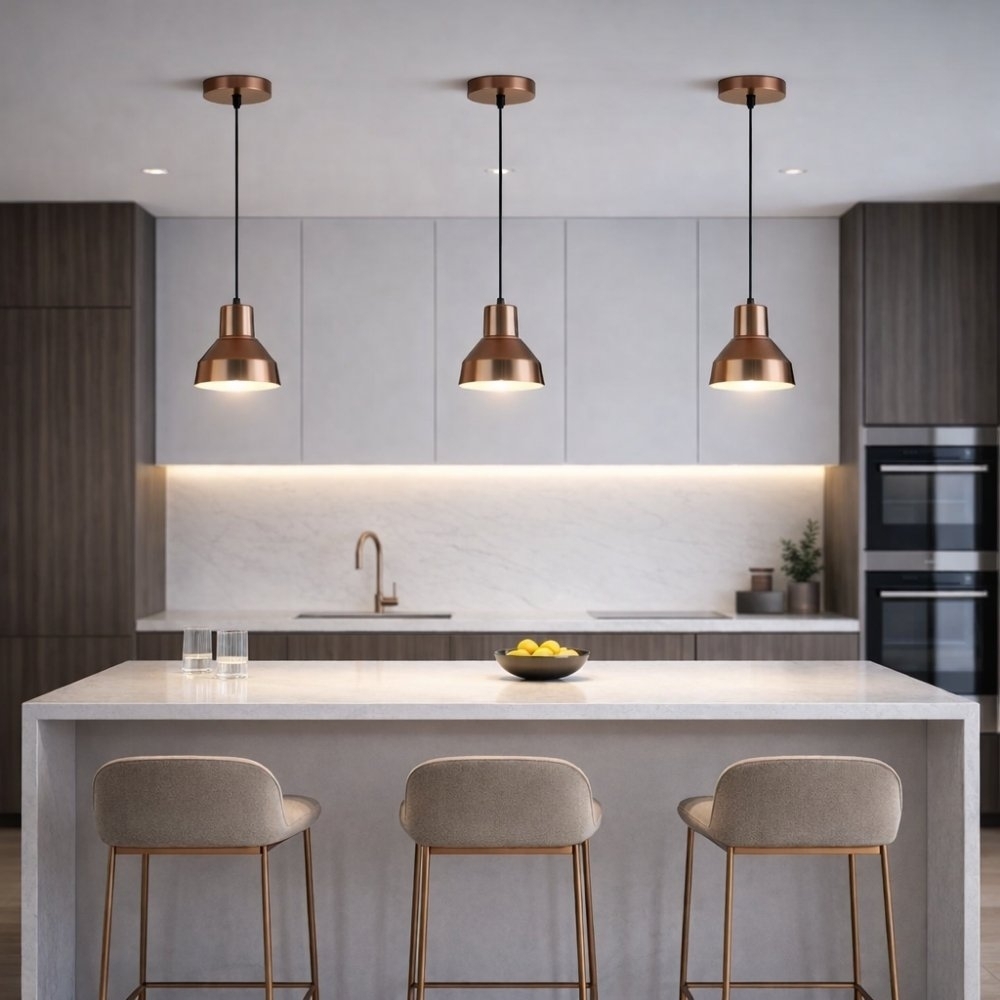 O Pendente Viena da Kin Light é a escolha ideal para quem busca sofisticação e estilo na iluminação decorativa. Com design moderno e acabamento em cobre e preto, valoriza qualquer ambiente, trazendo um toque elegante e contemporâneo para salas, cozinhas, quartos e áreas gourmet.