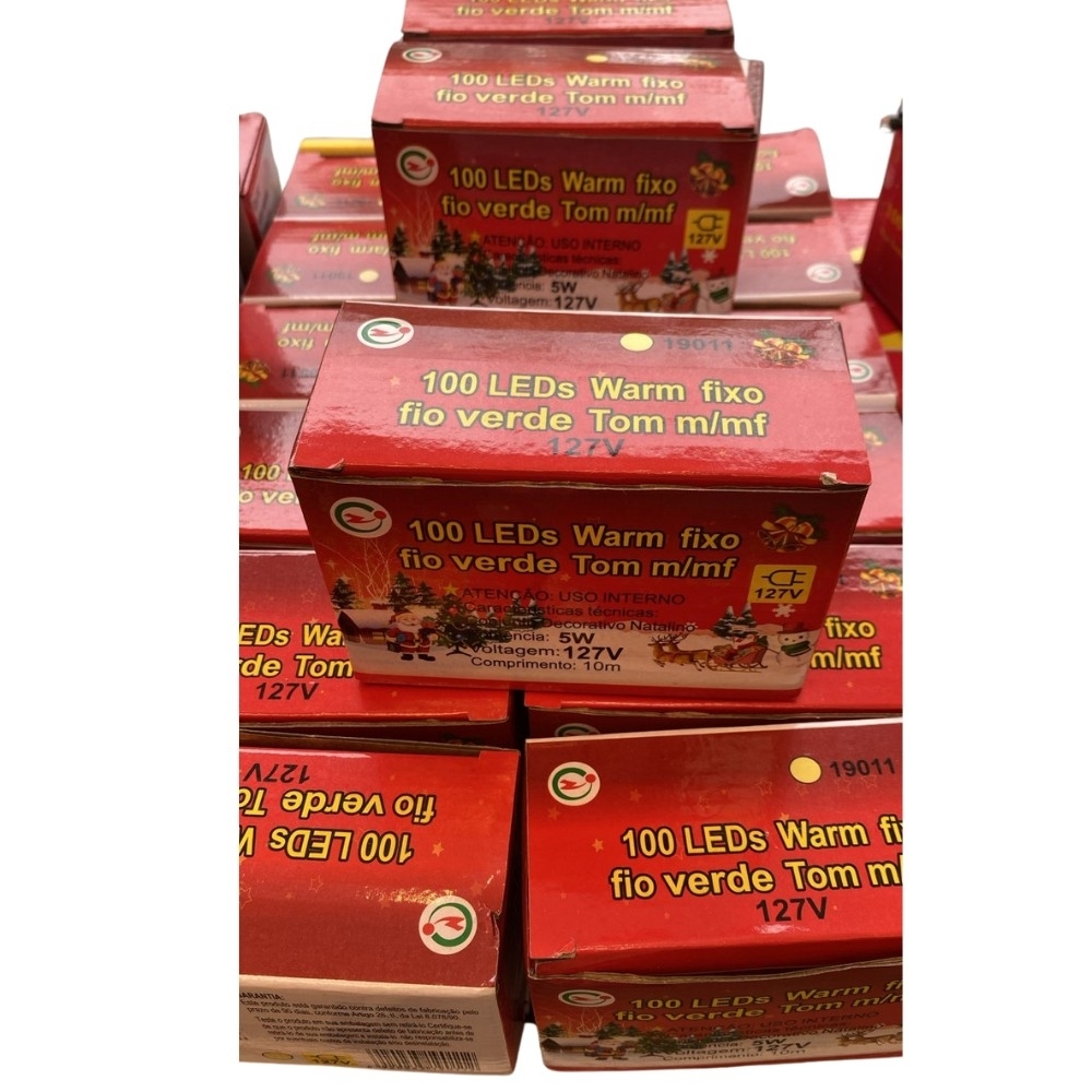 • Pisca c/ 100 Leds Fixo 220V Luz Amarela Fio Verde c/ 10 Metros - Remanci