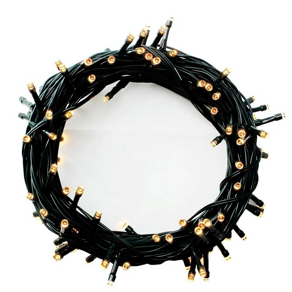 Conteúdo da embalagem: Pisca Pisca c/ 100 Micro Lâmpadas 220V Luz Amarela 8 Funções Fio Preto 6 Metros - Remanci