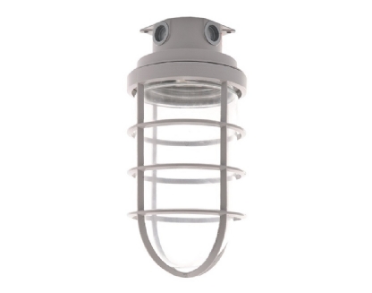 Luminária Blindada . Corpo e grade de proteção em alumínio , acabemento com pintura na cor cinza. Orelhas na base com furação para fixação com parafusos.