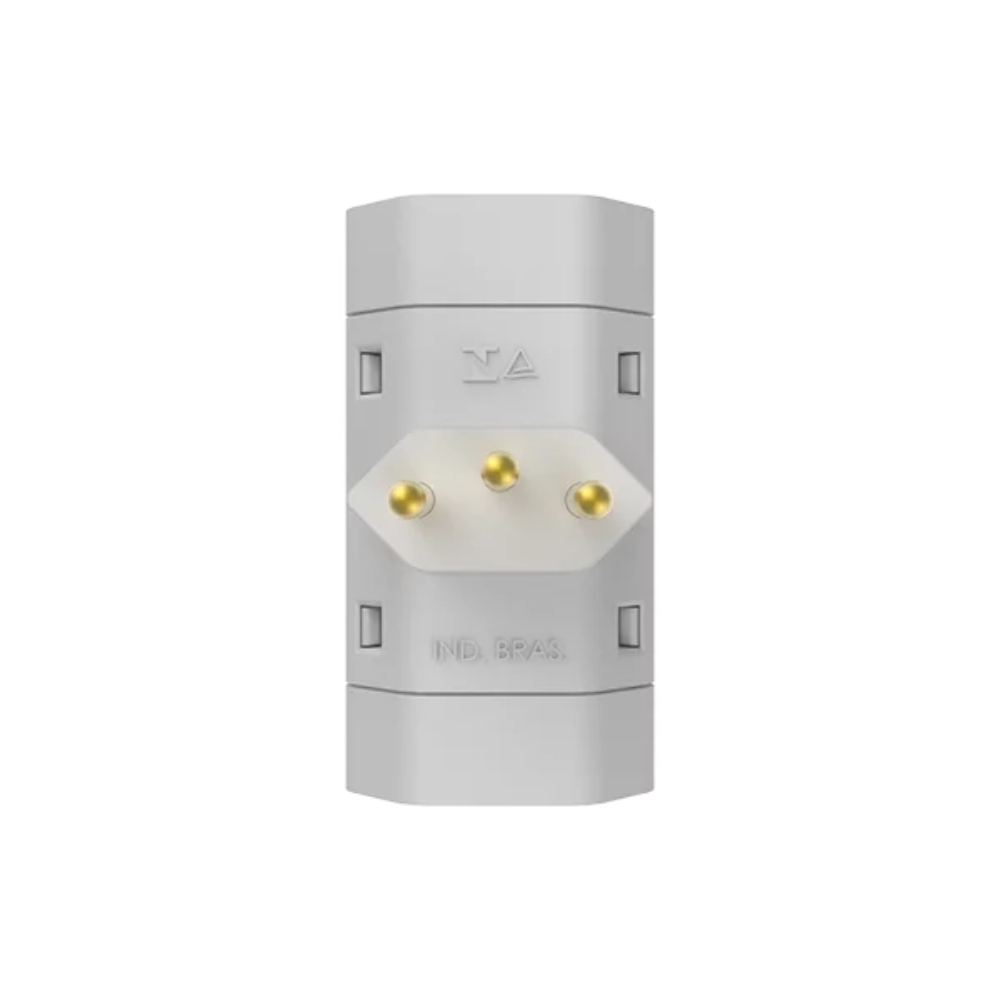 Na cor branca, o adaptador se integra facilmente a diferentes ambientes, unindo praticidade e segurança no uso diário.