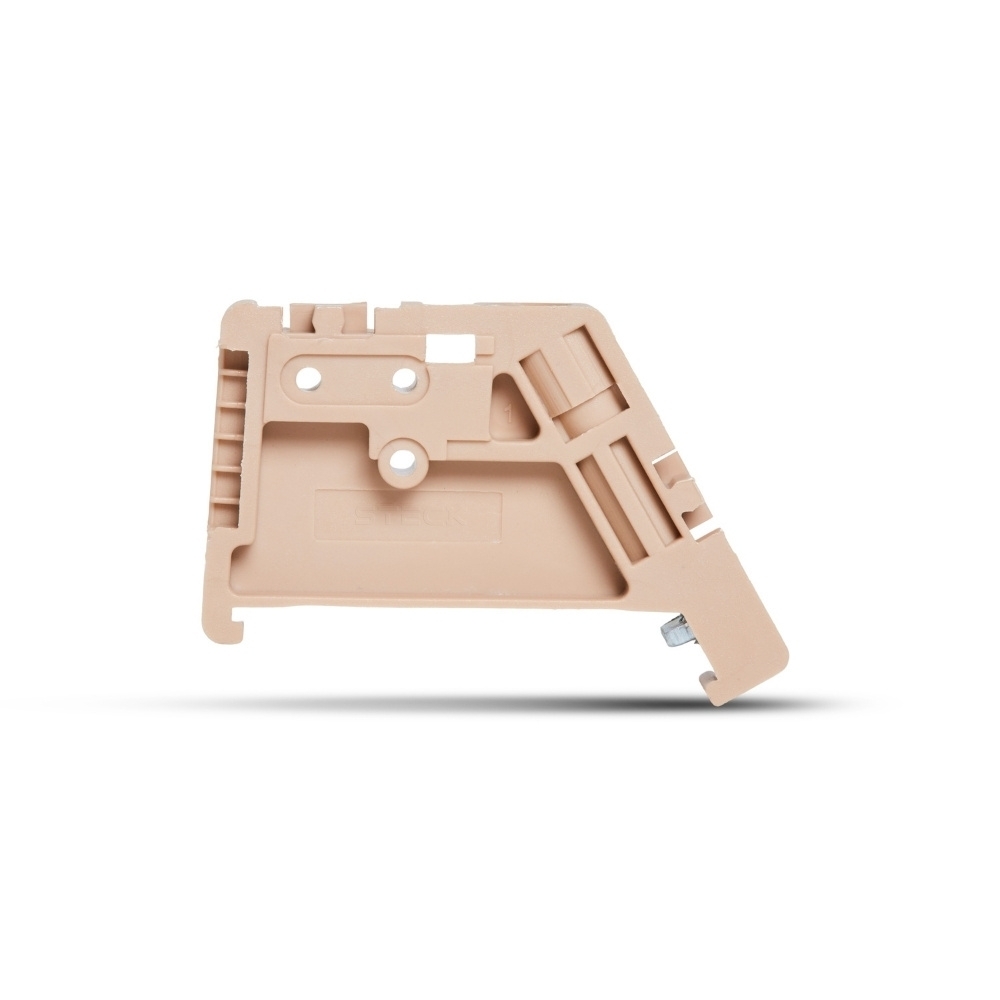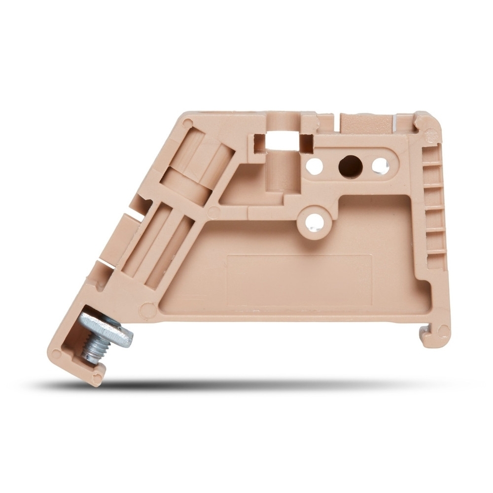 O Poste Final Borne K tem como função principal travar o conjunto de conectores ao trilho. Ele vem com placa separadora para as distâncias dielétricas, por exemplo, separar conjuntos contíguos de conectores que estejam interligados por pontes conectoras.