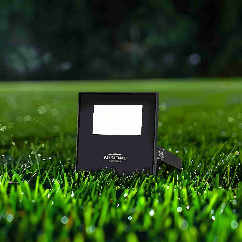 O Refletor LED Play da Blumenau Iluminação possui um índice de proteção IP66, garantindo resistência contra jatos potentes de água e poeira, tornando-o ideal para instalação em áreas externas abertas. Esse alto nível de proteção assegura a durabilidade e a robustez do refletor, mesmo em condições climáticas adversas. Com 10W de potência, este projetor LED 10W emite uma luz branca intensa de 6500K e um fluxo luminoso de 780 lúmens, garantindo uma iluminação eficiente e de alta qualidade.