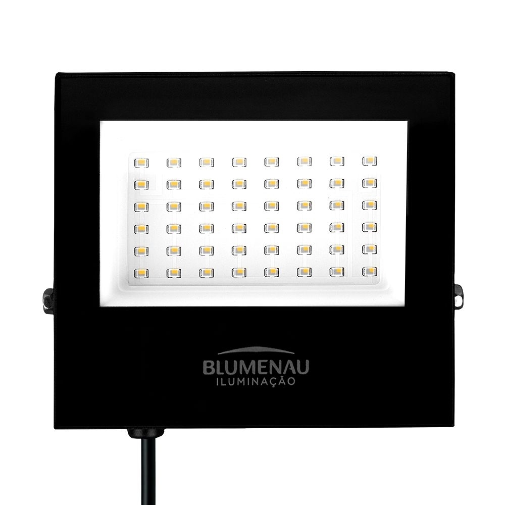 O Projetor LED Play 50W Bivolt Luz Neutra 4100K 3900LM IP66 - Blumenau é a solução ideal para quem busca uma iluminação eficiente e de alta performance para ambientes externos. Este led refletor 50W da Blumenau Iluminação oferece um ângulo de abertura de 110°, proporcionando uma iluminação abrangente e uniforme, ideal para diversas aplicações, como decoração de espaços para festas, áreas com piscina, outdoors, fachadas e entradas de condomínios, entre diversas outras possibilidades.