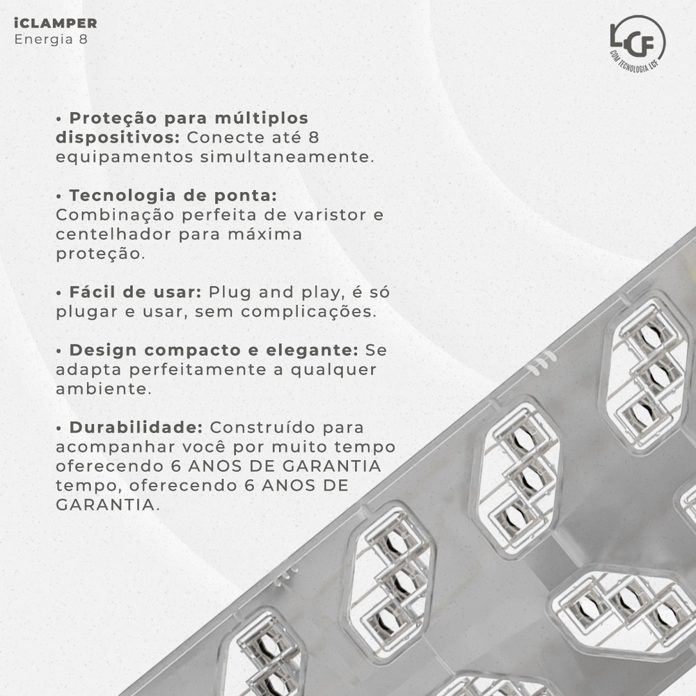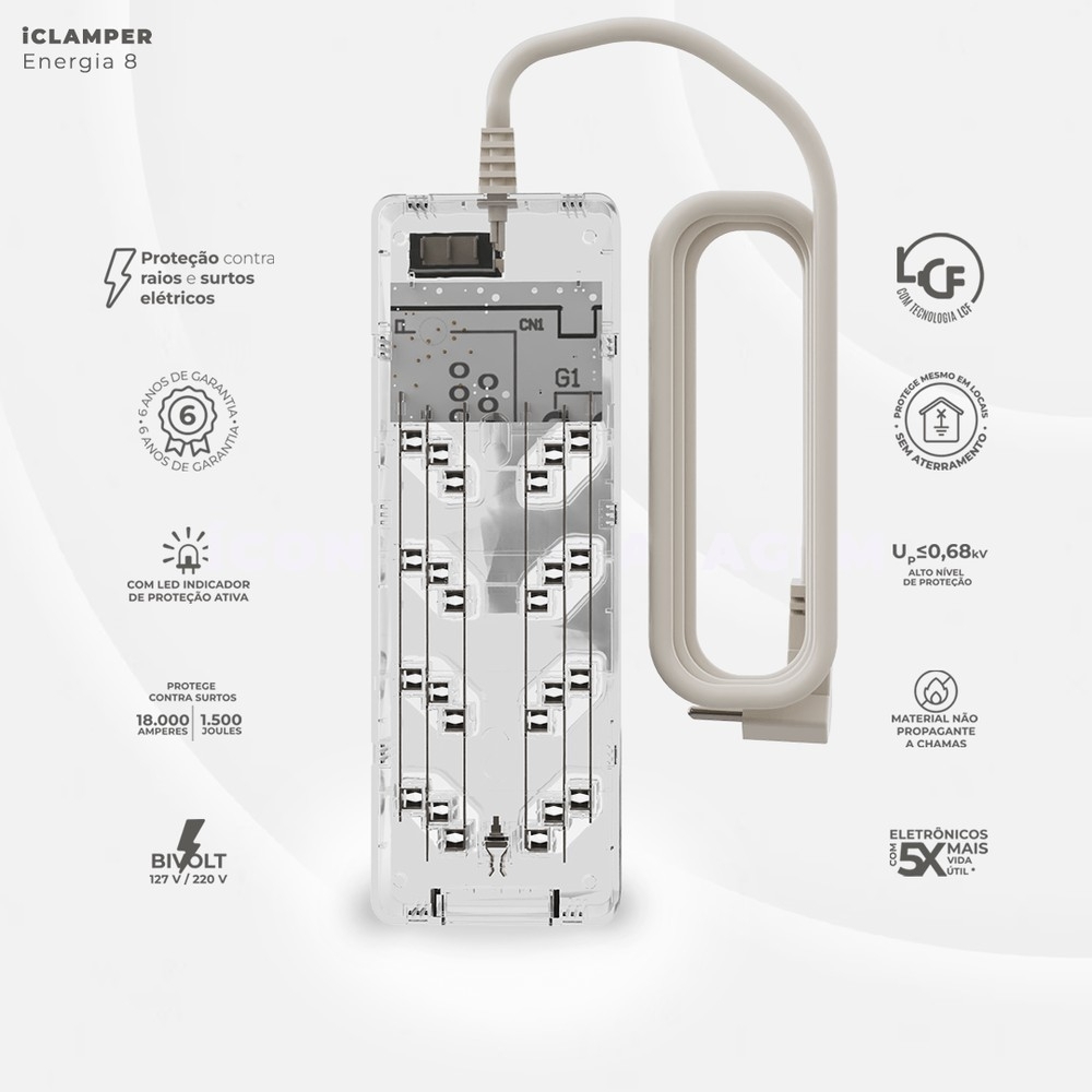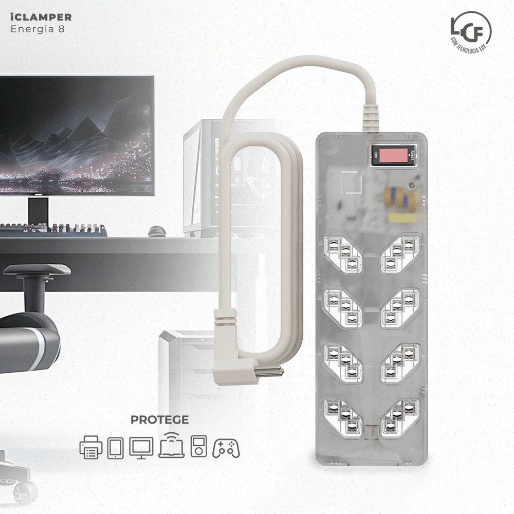 • PROTETOR DE SURTO PARA 8 TOMADAS COM FILTRO LINHA TRANSPARENTE - CLAMPER