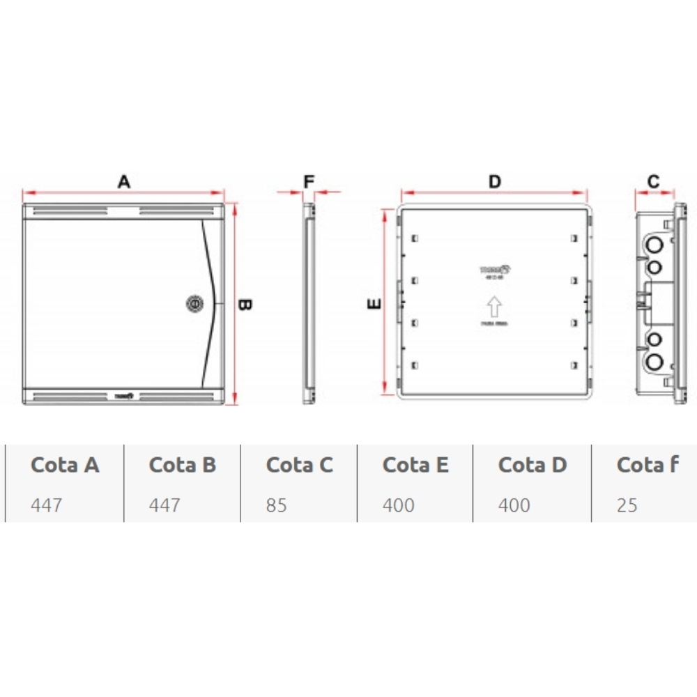 Com design inteligente, o quadro VDI Tigre é projetado para instalação embutida em alvenaria ou drywall, podendo também ser instalado de forma sobreposta. Conta com moldura com aletas de ventilação para melhor circulação de ar, porta reversível com opção para instalação de fechadura ou trinco, e placa de fundo móvel com pré-furos, facilitando a fixação de dispositivos e a manutenção das redes de TV, internet e telefonia.