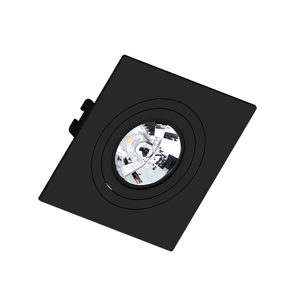 Produto: Spot Embutido Para 1 Lâmpada AR70 Quadrada com Face Plana Preta 360G