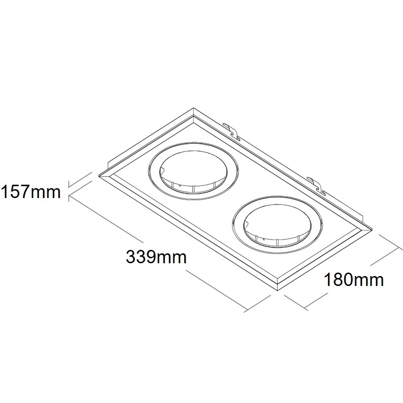 Compatível com duas lâmpadas PAR30 (não inclusas), o modelo tem nicho de embutimento de 168x325 mm e dimensões de 157x180x339 mm, sendo ideal para instalação em forros de gesso, sancas e tetos rebaixados.