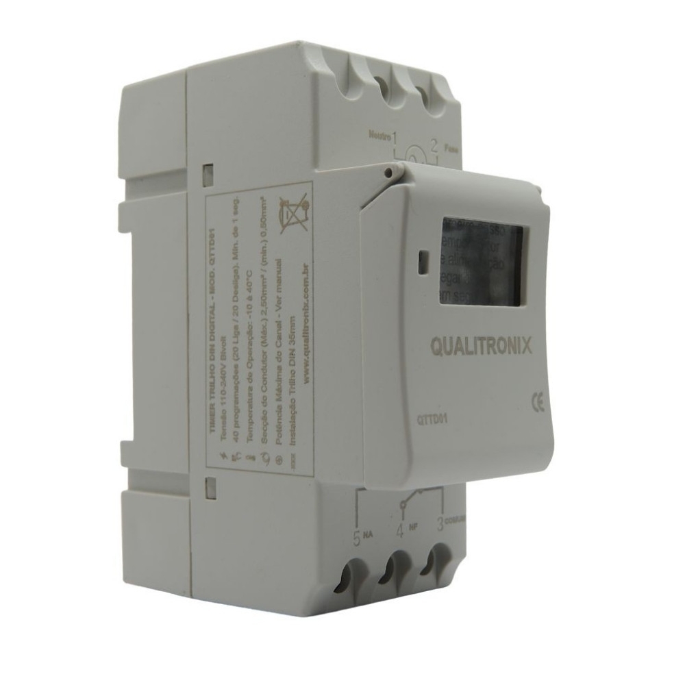O Timer Digital para Trilho DIN Qualitronix é uma solução prática e eficiente para automatizar o acionamento de equipamentos elétricos e eletrônicos. Desenvolvido para oferecer segurança, economia de energia e facilidade de uso, é ideal para aplicações residenciais, comerciais e industriais, com instalação direta em trilho DIN.