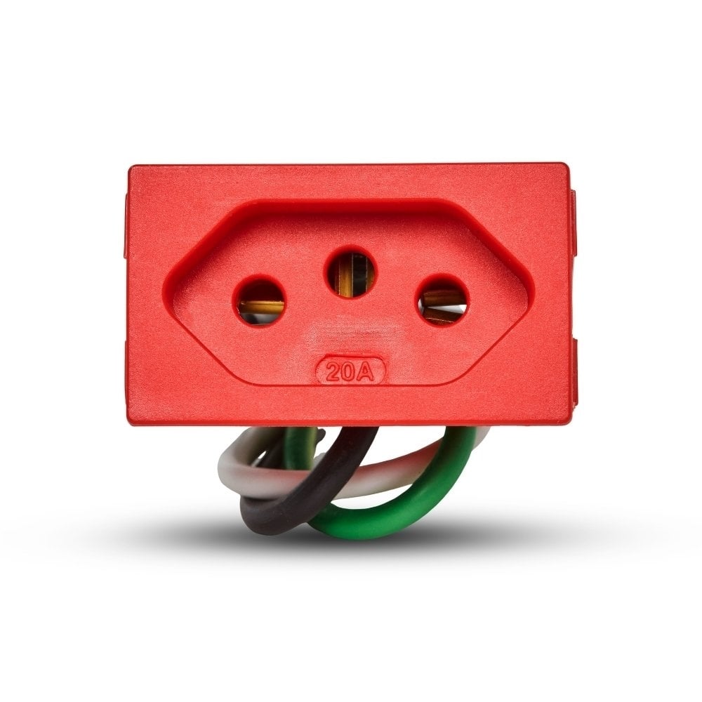 Com acabamento na cor vermelha para fácil identificação visual, a tomada oferece maior organização e padronização das instalações elétricas, contribuindo para um ambiente mais seguro e funcional.