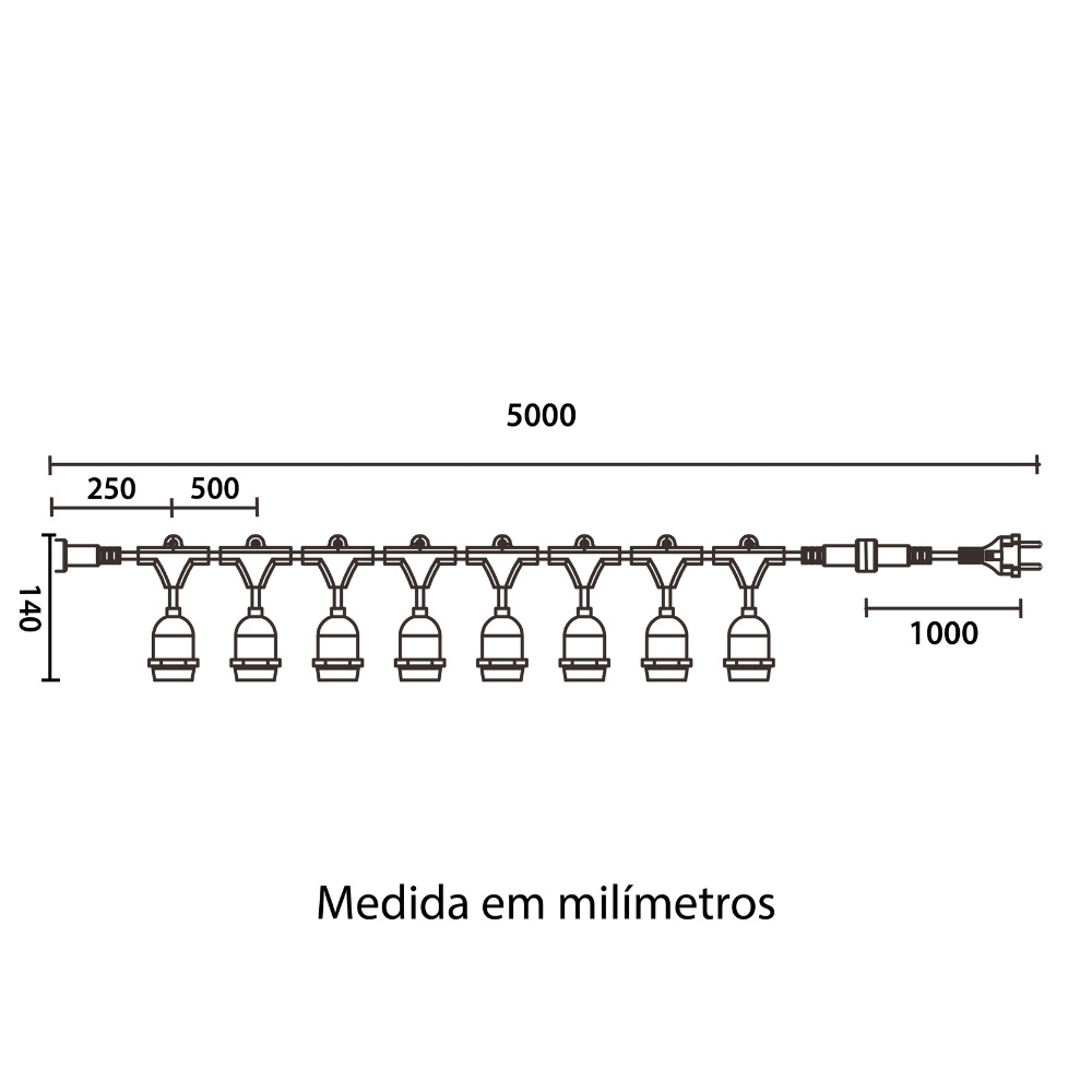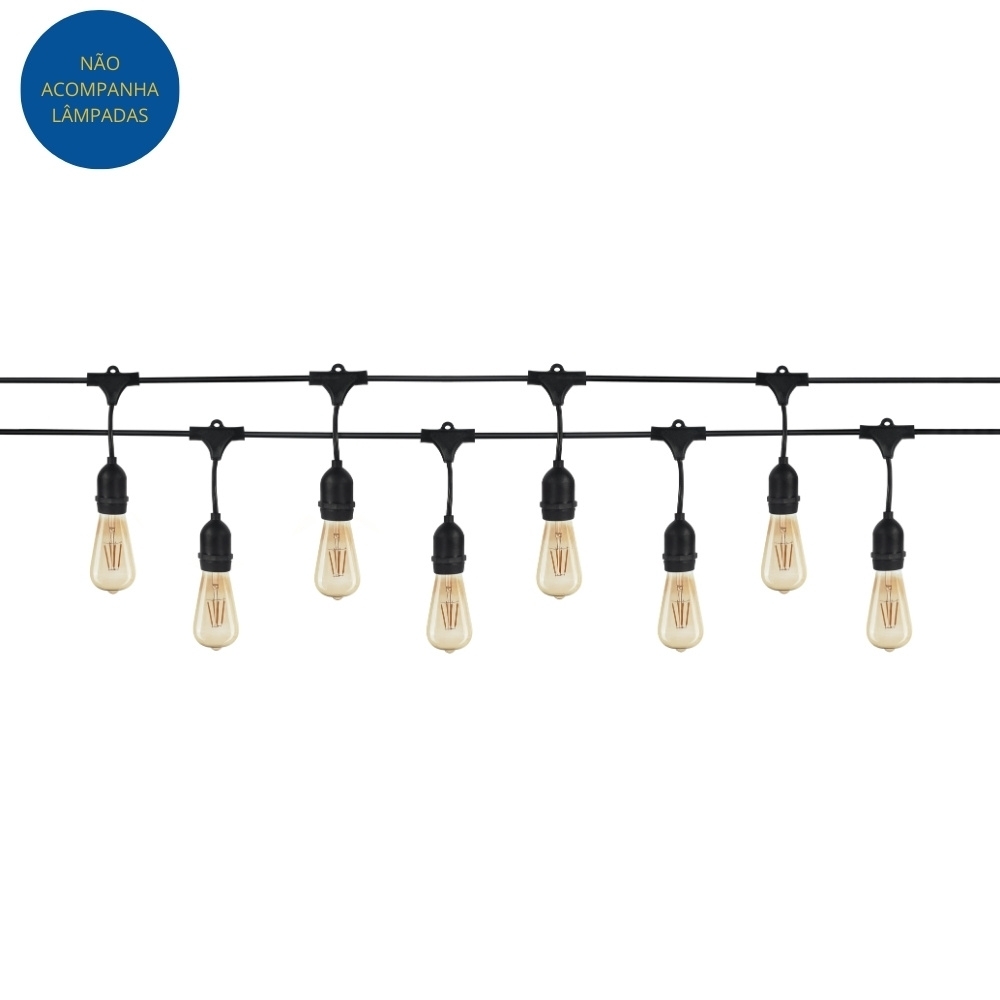 Varal Festão com 8 Soquetes E27 Preto IP65 5 Metros – Blumenau