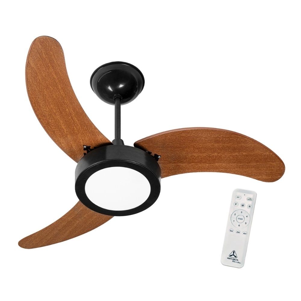 VENTILADOR INVERTER SUPER LED TETO 3 PÁS 18W BIVOLT PRETO COM CONTROLE - VENTI-DELTA